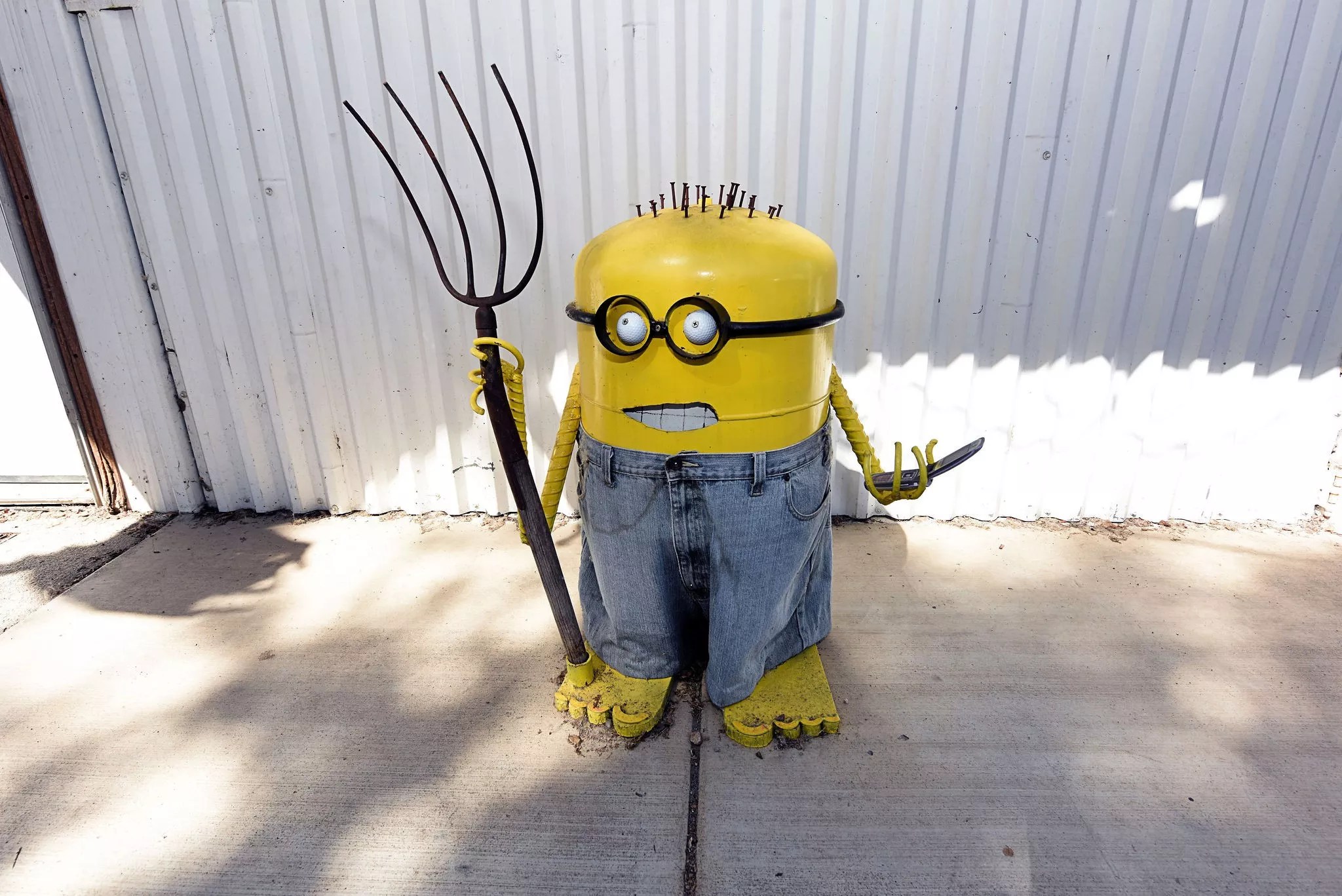 Swets has been slowing down lately. He made his last sculpture a year ago, a little Minion that stands near two twenty-foot-high dinosaurs. “I just don’t have the strength to bend metal into ribs,” he says, gesturing at the behemoths. He’s had some health issues and he’s hard of hearing; Diane often has to repeat questions. But he still has the energy to come out and talk to the people who visit his place and marvel at his creations.