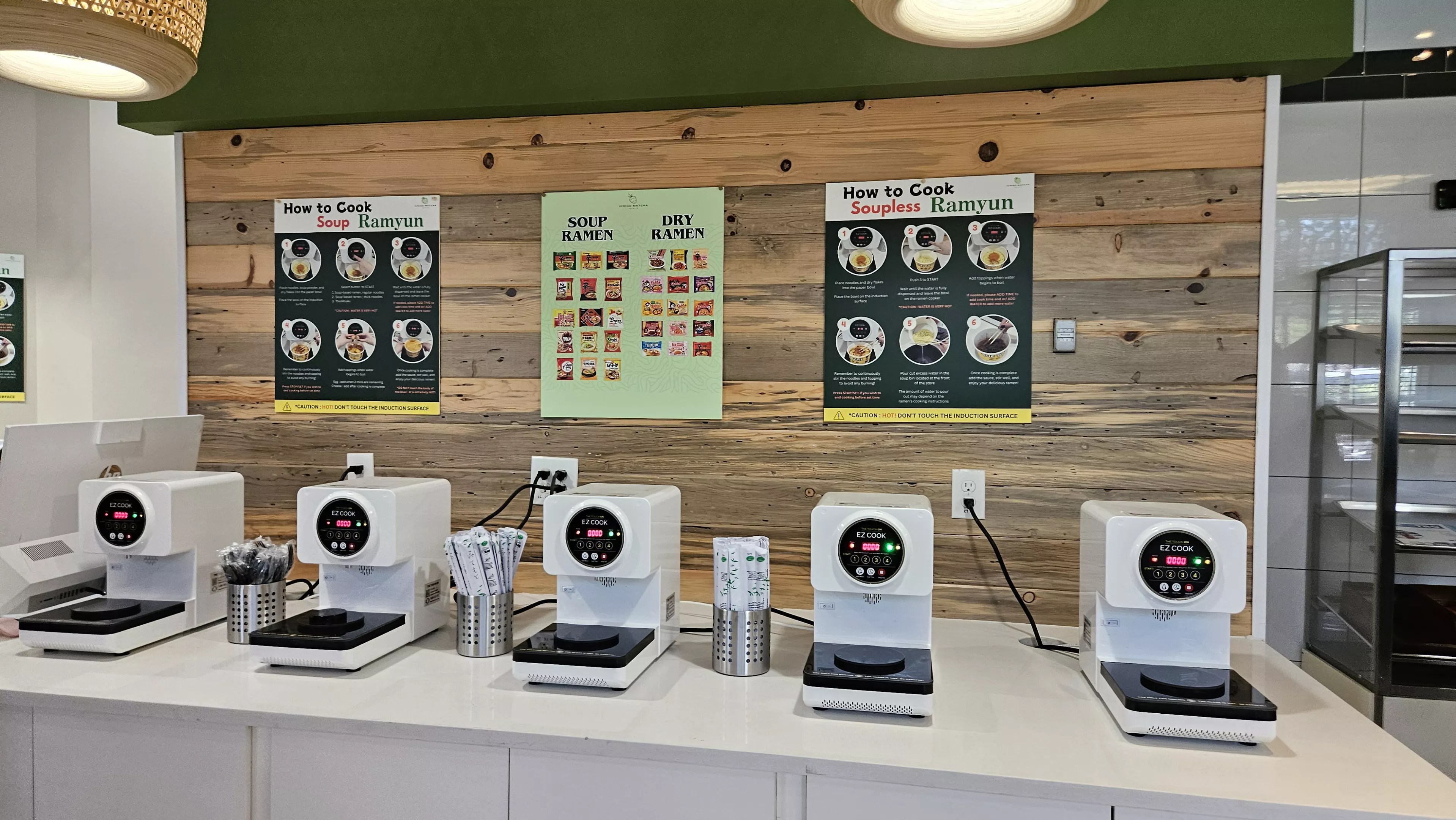 “We can sell fruit. I have an Ichigo Sando,” she notes, so she will be selling her popular strawberry sandwich and other fruit sandwiches from the kiosks. But for now, the ramen-making units should keep her plenty busy serving her collegiate customers.
