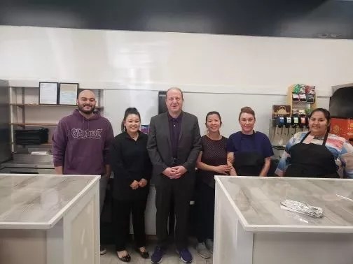 Carrasco, second from left, with Governor Polis and the rest of the new cafe crew.