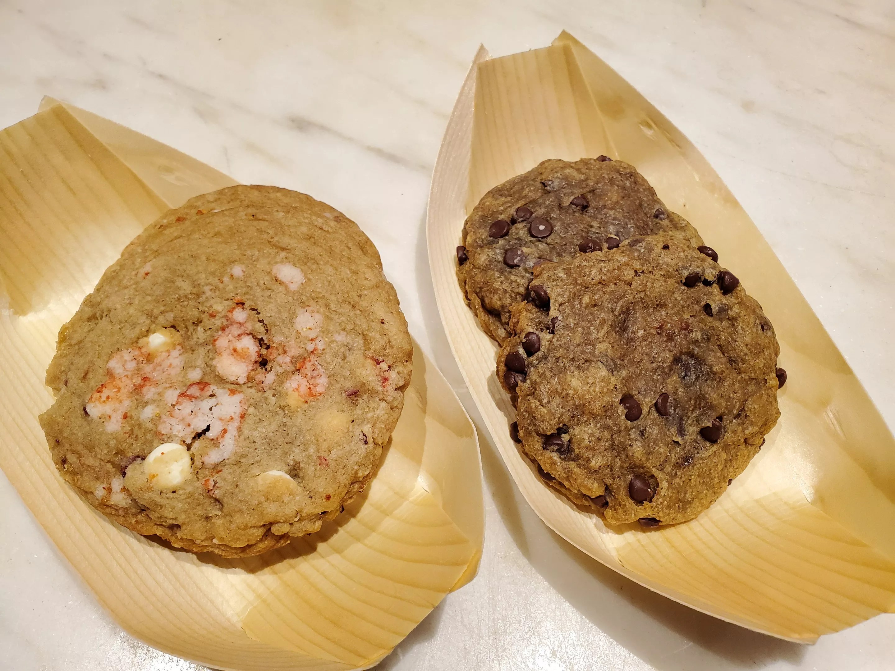 To help create the menu, Dayton brought on consulting pastry chef Jennifer Akina of Azucar Bakery to whip up a rotating selection of cookies, Thai-style ice cream sandwiches and swirls of soft serve in flavors such as pomegranate, Thai iced tea and Chartreuse. The cookies will change each week and often include a vegan option such as vegan chocolate chip (available now), as well as traditional butter- and egg-filled cookies like strawberry with white chocolate and strawberry streusel. The soft serve options will also include a rotating vegan flavor; this week’s is coconut.