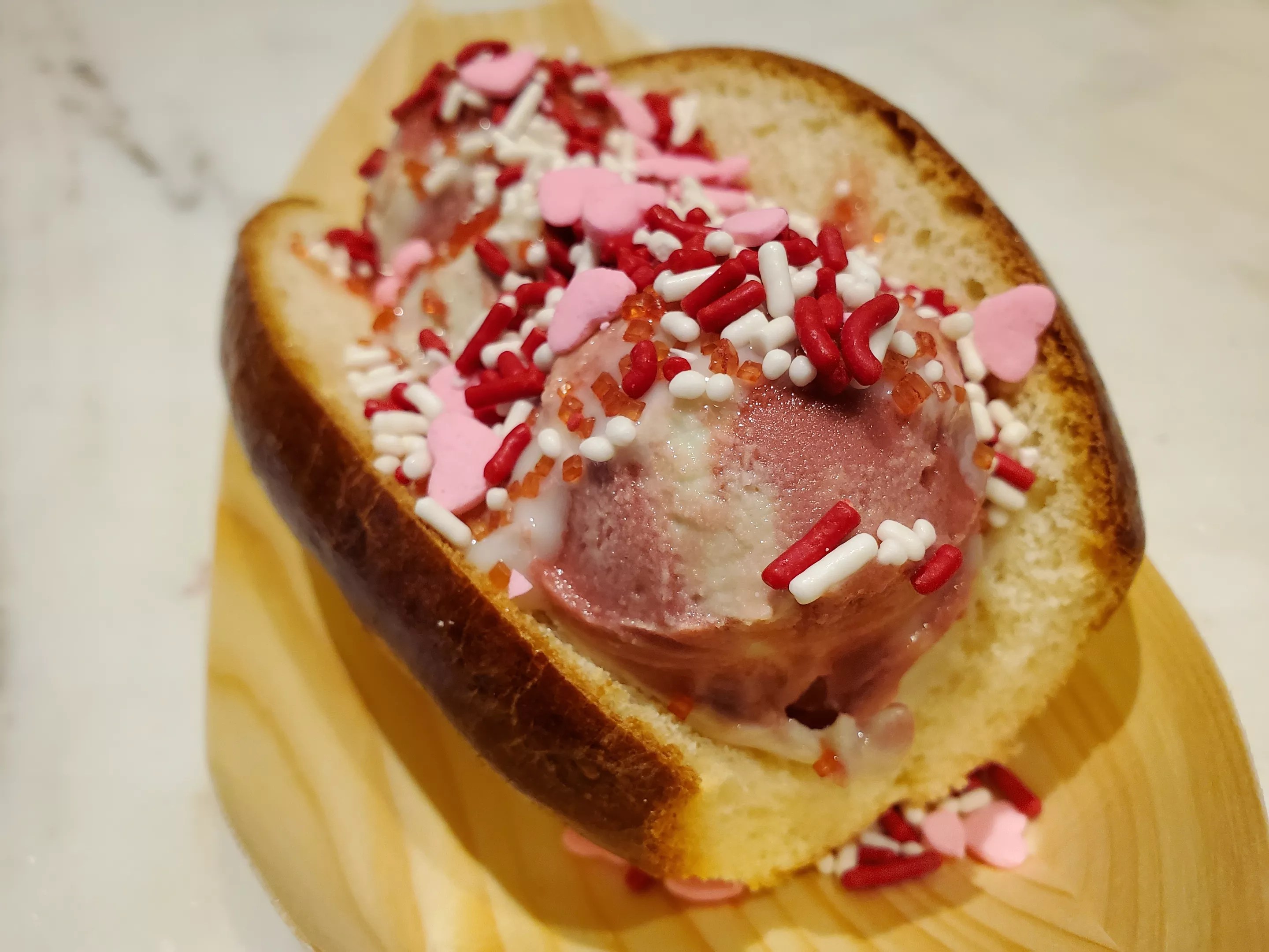 The idea, he says, was to do something different on the dessert front. After garnering inspiration from his time in Thailand in 1999 and feeling sentimental about the ice cream sandwich carts he would visit, Dayton decided on a mix of Thai milk-bun ice cream sandwiches and soft serve ice cream in uncommon flavors.