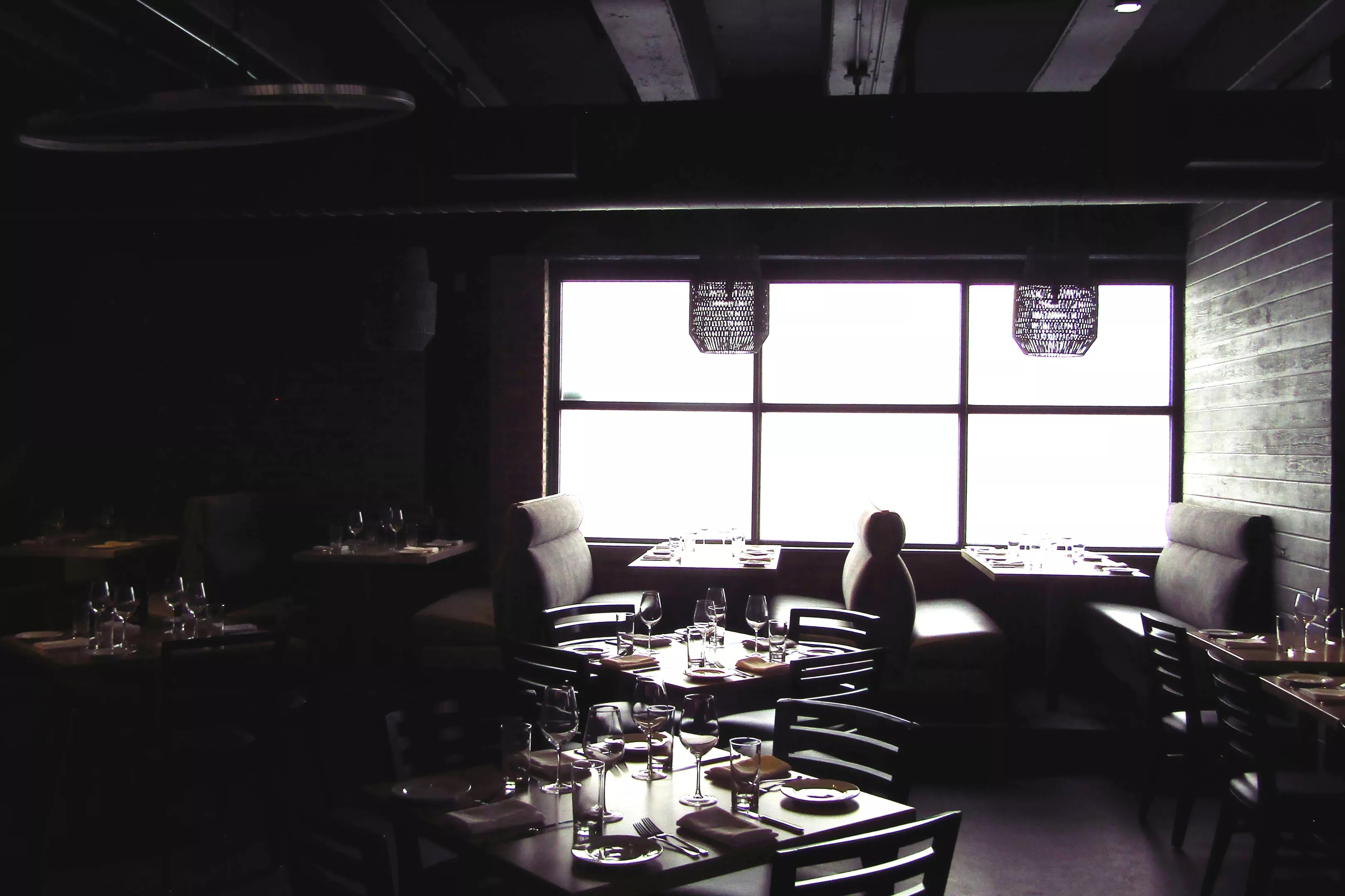 Ad Hominem’s dining room gets a burst of brightness from a frosted window on the east side of the building.