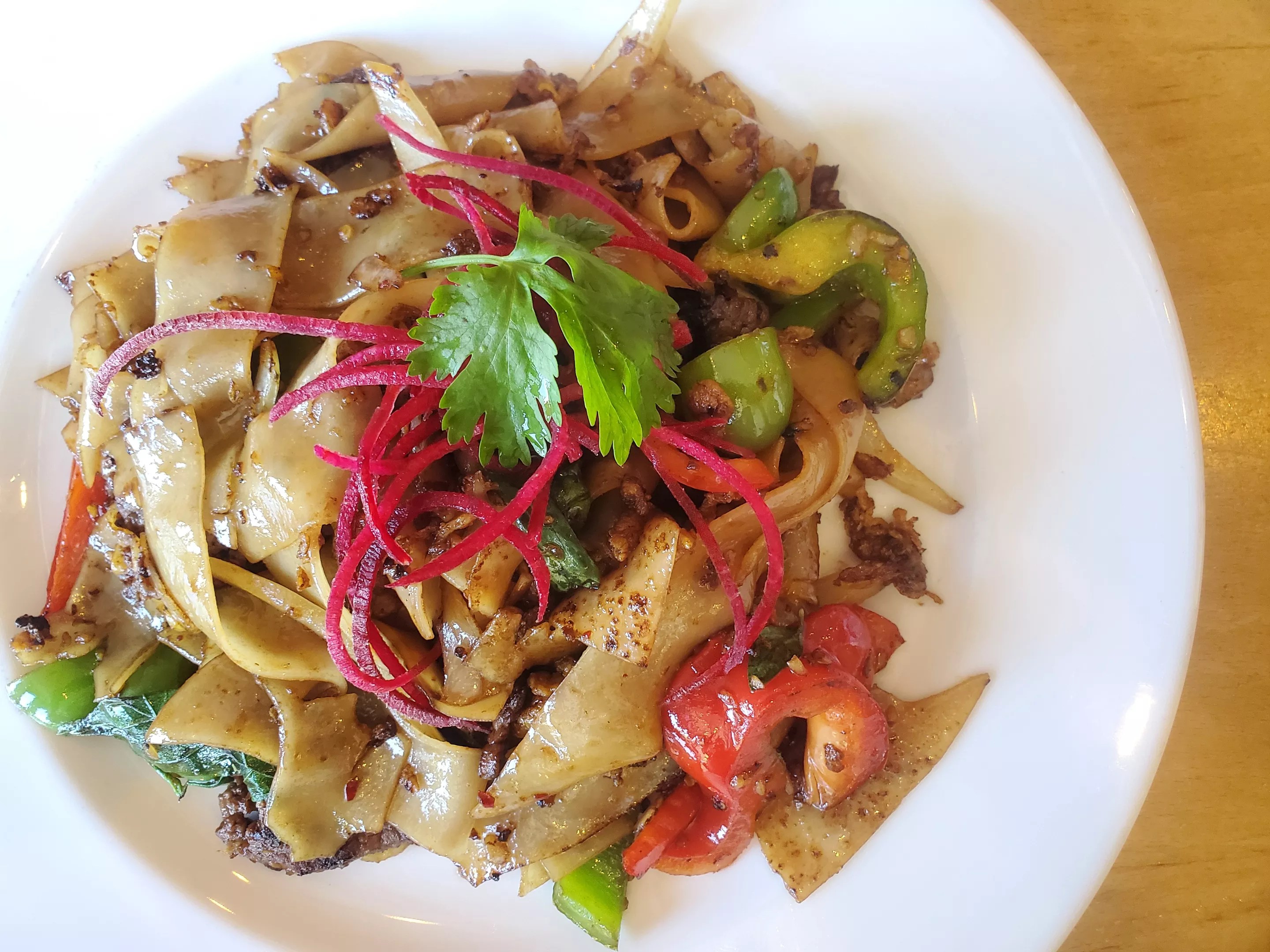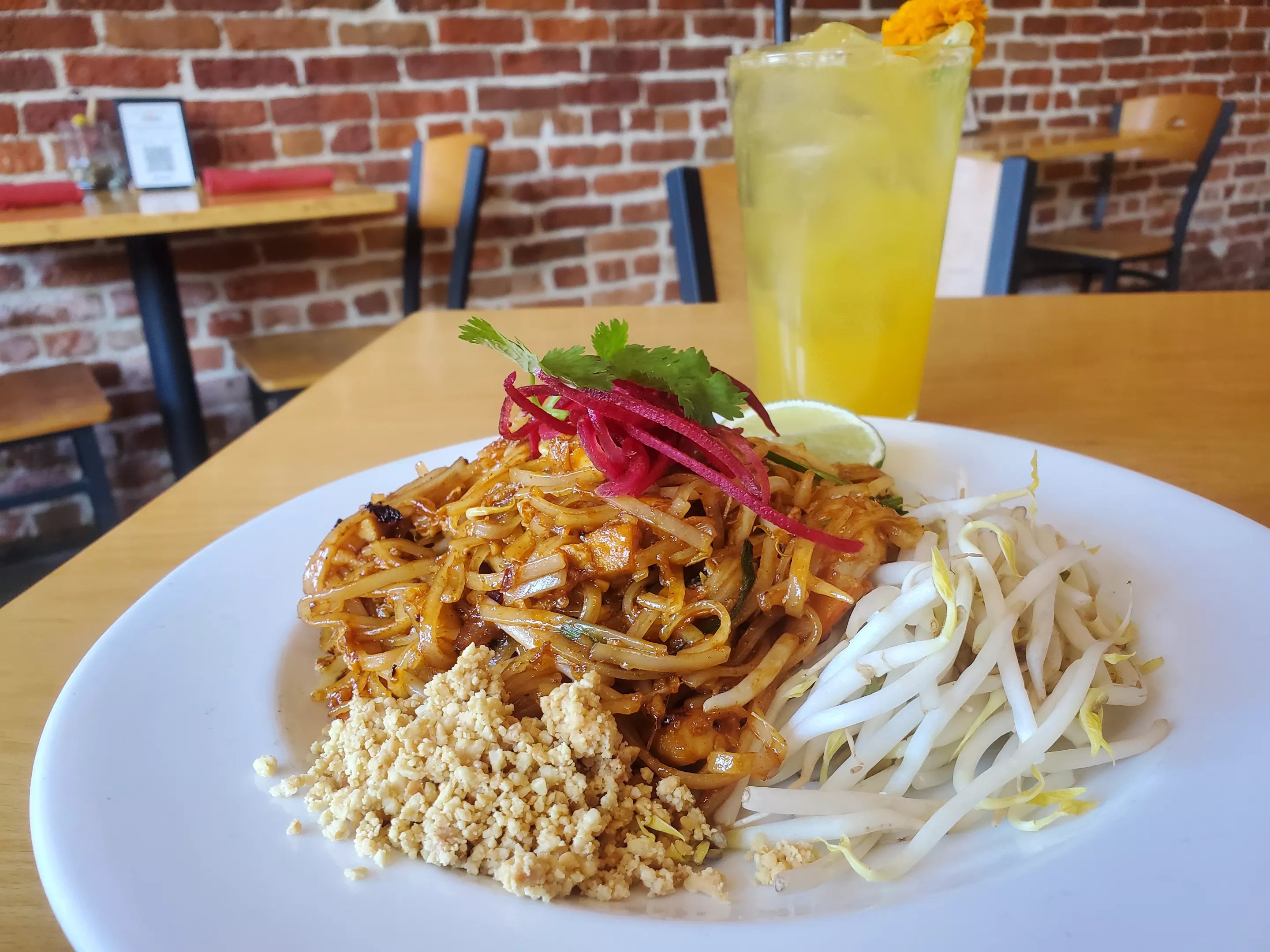 Before COVID, Fisher says that 35 to 40 percent of the business at the first two Aloy locations was takeout. Now it’s closer to 65 percent, and she’s expecting a similar percentage at the Eatery. The menu at this outpost has been trimmed down to the fifteen most popular items, including staples like pad Thai and drunken noodles, as well as the two dishes that were featured on Guy Fieri’s Food Network show Diners, Drive-Ins and Dives in 2017: khao soi and lemongrass chicken.