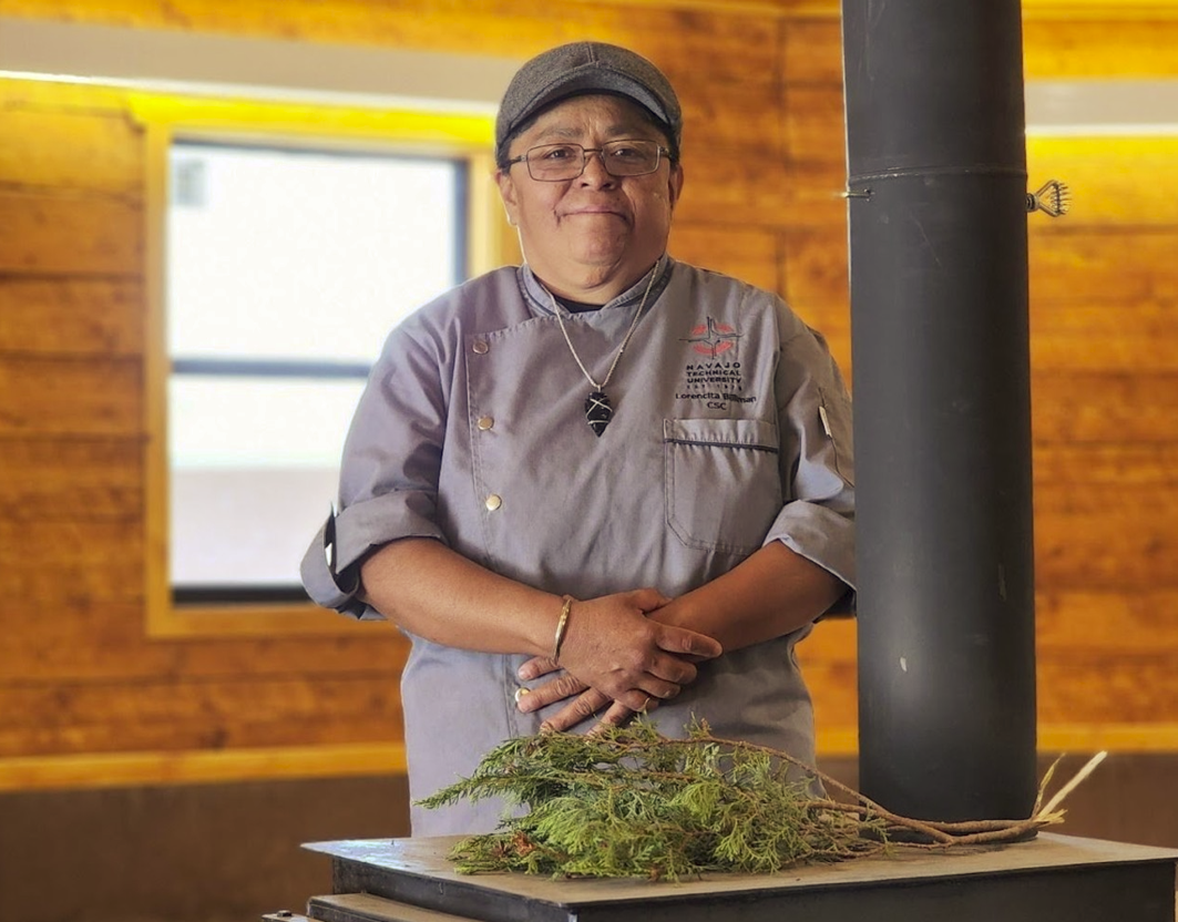 “Before we were colonized, we didn’t have commodity food, diabetes, alcoholism, things like that,” notes Lorencita Billiman, technical instructor in culinary arts at Navajo Technical University. “For today’s generation, especially in the culinary world, I try to get my students to understand our cultural foods and make them realize they can make a greenhouse in the back of their house to grow produce, understand three sisters (corn, beans and squash), how to grind corn, etc. In the beginning of my cooking experience, there was no electricity, no running water, so we had to improvise. We used a wooden stove and hauled our water. … Now, with today’s society, we are coming back to our traditional cultural foods, and we aren’t necessarily doing it how they used to do it back in the day. We are modernizing it.”