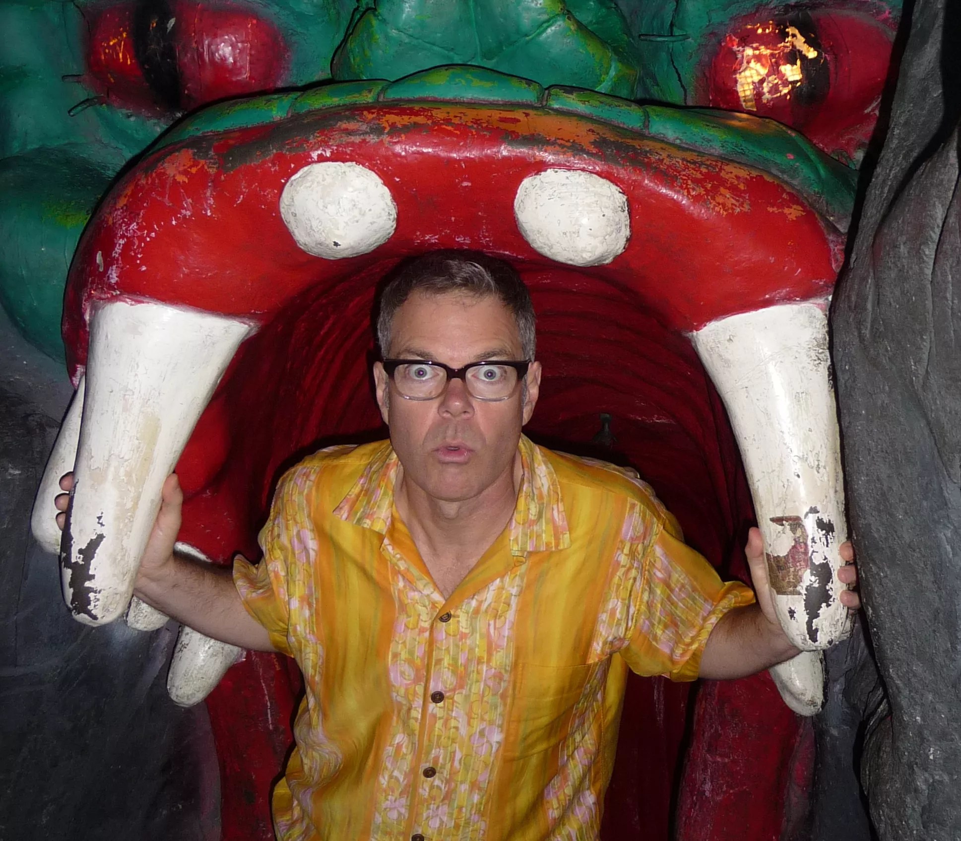 Author/collector Charles Phoenix inside the mouth at Black Bart’s Cafe.