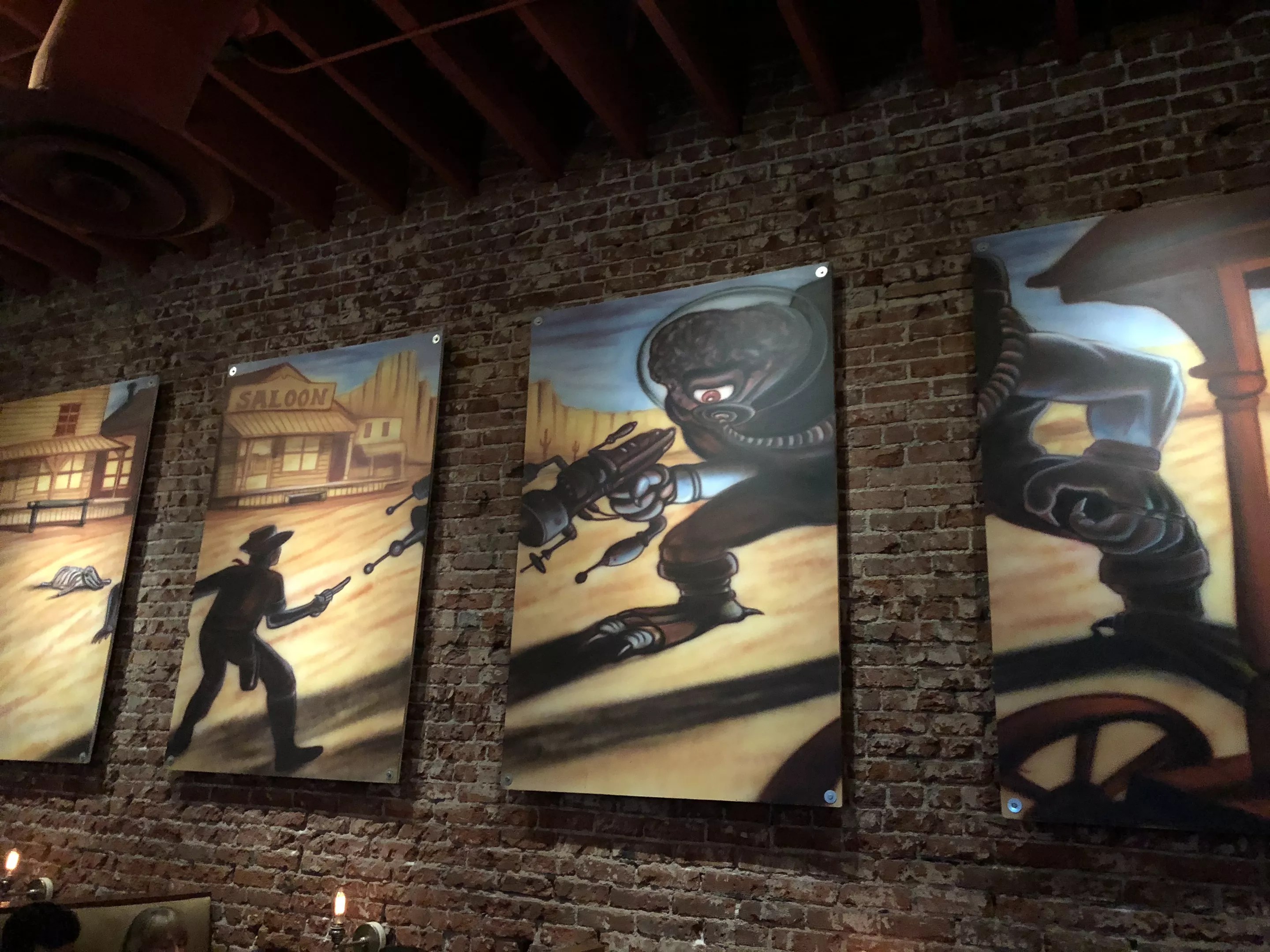 It was around this peak-Atomic Cowboy era that I moved out of the apartment blocks away from the bar and stopped going there as much. But it’s clear that the business has survived without me. Nowadays, both Fat Sully’s and Denver Biscuit Company have traveling food trucks about town, available for private rental in addition to frequent public events. And several more iterations of the bar/biscuit/pizza trio have sprung up around town, starting with the Fat Sully’s on South Broadway, which soon gave rise to an adjacent Atomic Cowboy and Denver Biscuit Company in 2013, and continuing with a 2015 opening on Tennyson Street. There’s even a stand-alone Denver Biscuit Company in Stanley Marketplace in Aurora that opened last year. All run true to form, full of cowboy space art, vintage furniture and craft beers.