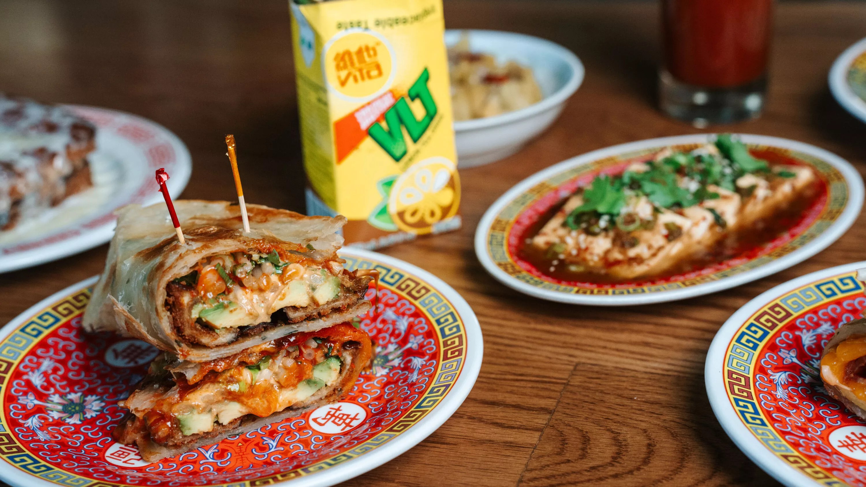 The team has also revamped the drink menu with cha chaan teng-inspired beverages like the Yuenyeung Cocktail, an alcoholic milk tea made with Die Die Must Try‘s black tea; and the Tiger Mom, a Bloody Mary made with vegan fish sauce and, for an additional charge that’s totally worth it, a Sichuan Five Spice tequila. Yuen loves the name of that cocktail. “My daughter, she’s born in the year of the tiger, and the Chinese name for the character in MAKfam’s logo means little tiger place,” she explains. “The drink is a little spicy, it’s a little savory, it’s extra – just like your typical tiger mom: My kid’s better than yours. My Bloody Mary is better than yours.”