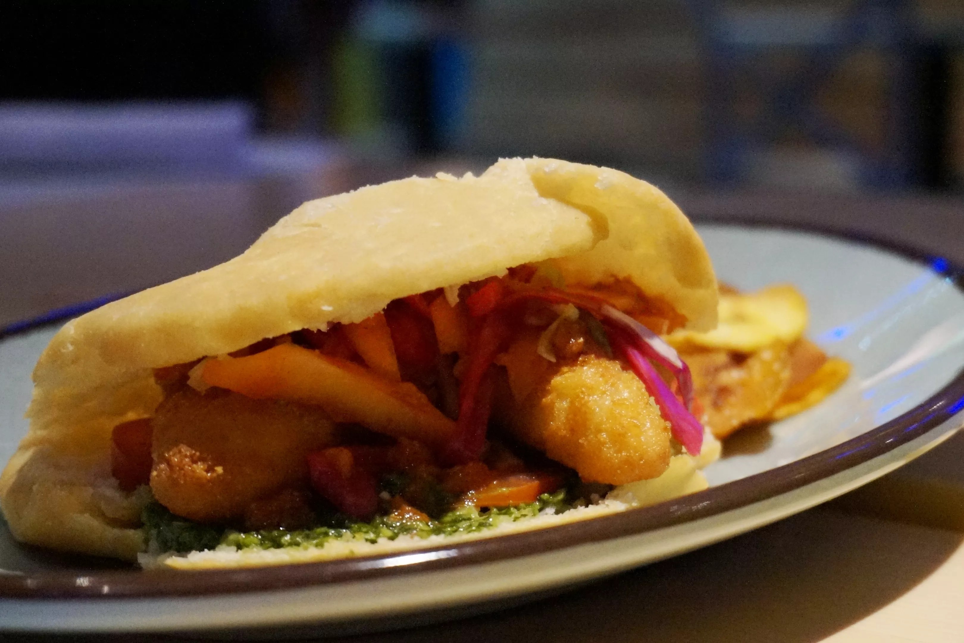 Most notable, though, is the “bake and shark,” a Trinidadian specialty of deep-fried shark tucked into a crispy flatbread pocket. While many species of shark are considered off-limits by conscientious seafood eaters, Bang Up to the Elephant uses spiny dogfish, a species approved by the Monterey Bay Aquarium Seafood Watch. Other sustainable seafood will also be used in the dish, depending on availability throughout the year.