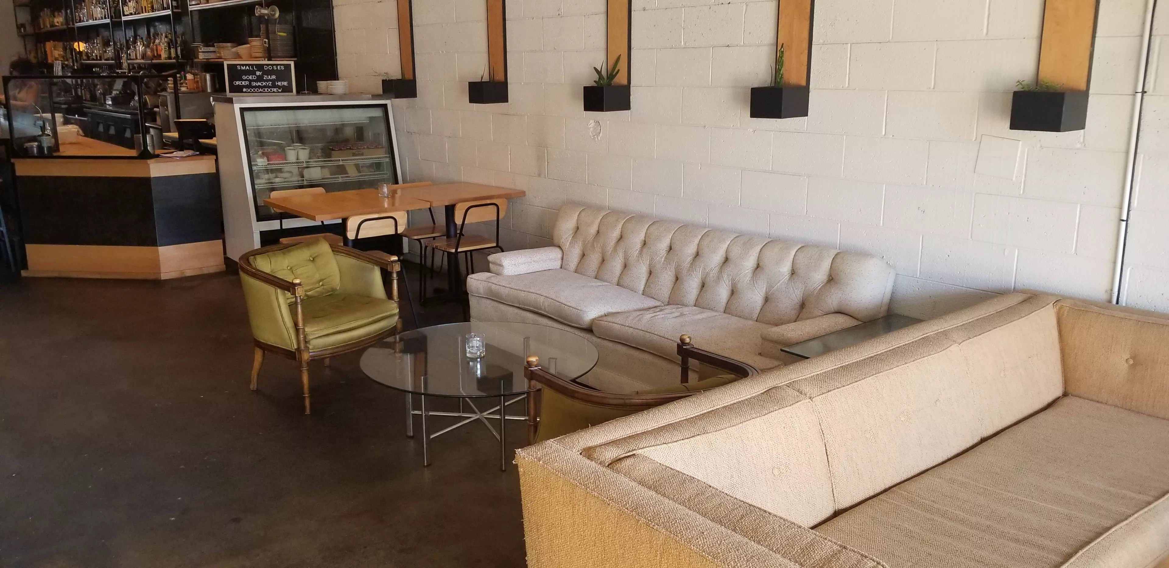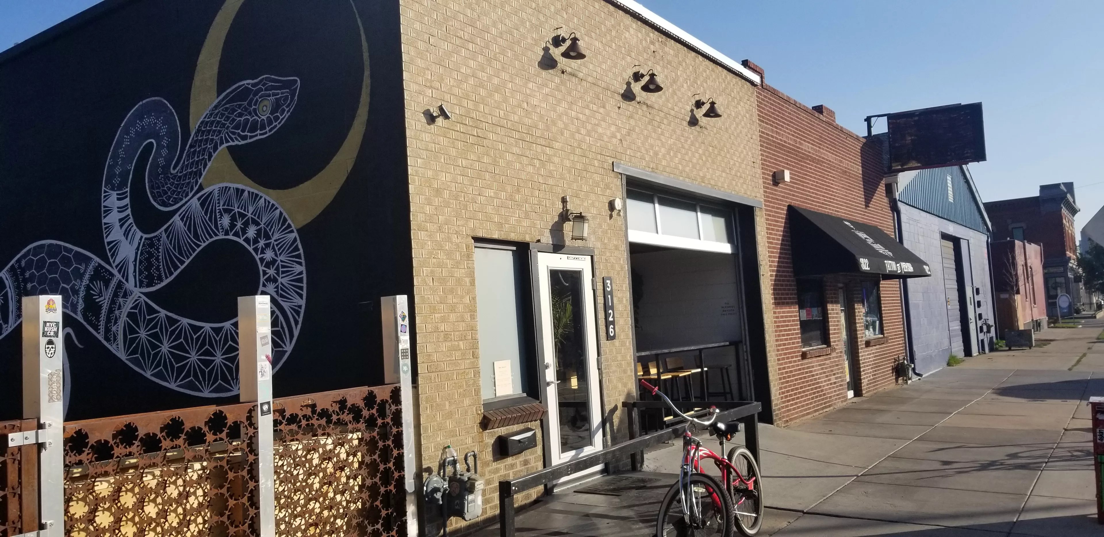 A new patio, which will be both a nice spot for some outdoor drinks and a certified pollinator habitat to attract birds, bees and other urban wildlife, shows a commitment to improving the neighborhood. Plants will all be indigenous, except for planters filled with organic herbs and vegetables that will be used at the bar. This dream patio is still in the works and is mostly just cement and gravel so far, alongside a mural that will remain as a part of the exterior decor. But there are already a few plants peeking over the patio fence from Capello’s, a grain-free-pasta company next door. The overall vision is a miniature habitat with eclectic furnishings similar to Forest Room Five’s patio, softening the industrial side of this part of town. The group’s other bars nearby participate in the Crush Walls graffiti art festival, and Gold Point will likely be involved as well, so new art could soon be added to the building.