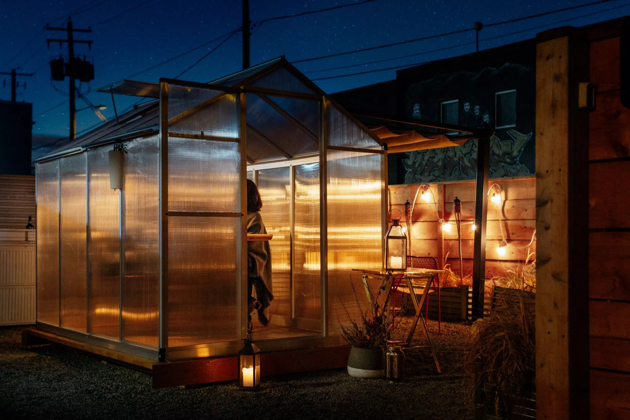 The chef-counter experience is on hold for now in favor of intimate greenhouse and heated patio seating.