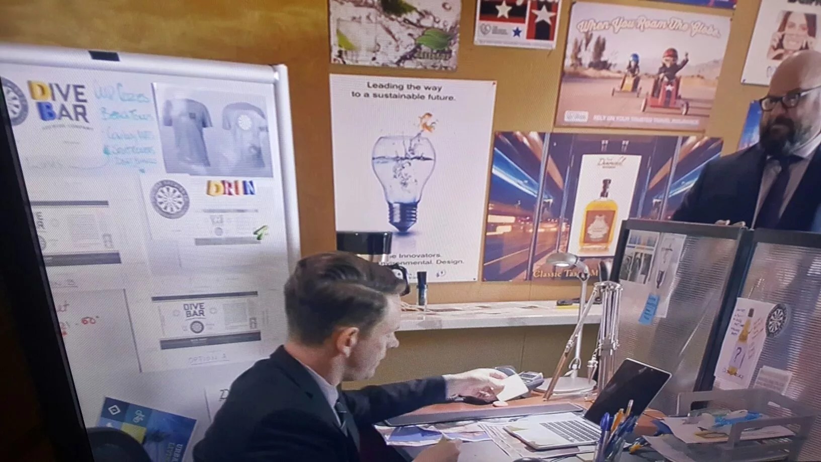 Dive Bar Beer will take a bit part in a new TV comedy series from writer-director Peter Farrelly (Dumb and Dumber, There’s Something About Mary) and Emmy-winning writer Bobby Mort (The Colbert Report). The show, Loudermilk, which airs on the Audience Network, stars Ron Livingston as Sam Loudermilk, a recovering alcoholic and substance-abuse counselor with an extremely bad attitude. One of the recovering addicts in Loudermilk’s counseling class works at a fictitious ad agency that has many clients, including Dive Bar Beer (for the purposes of the show). So various mock-ups of the logo and label appear in numerous episodes.