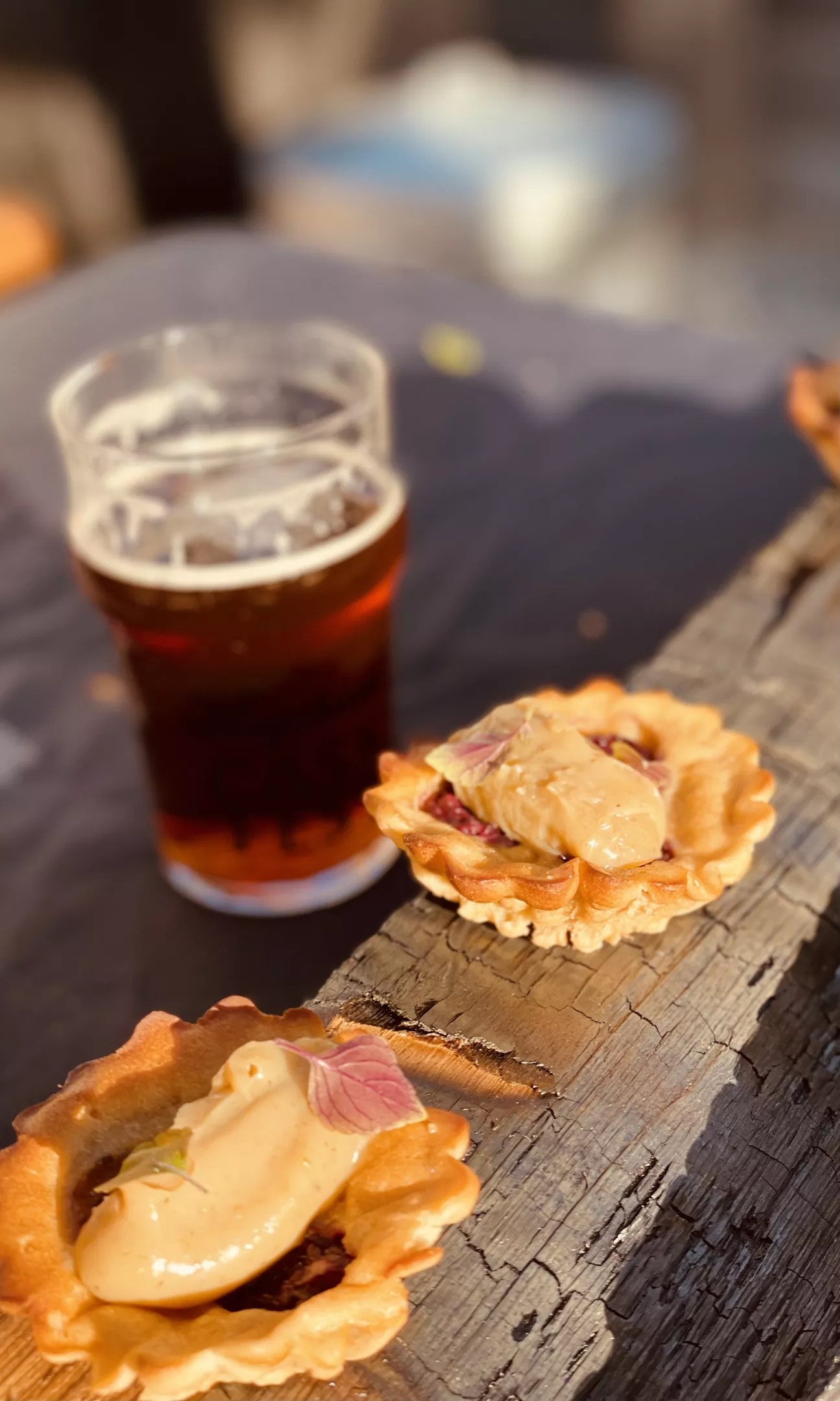 Cherry clafoutis with hop cream paired with an ESB from Hogshead Brewery.