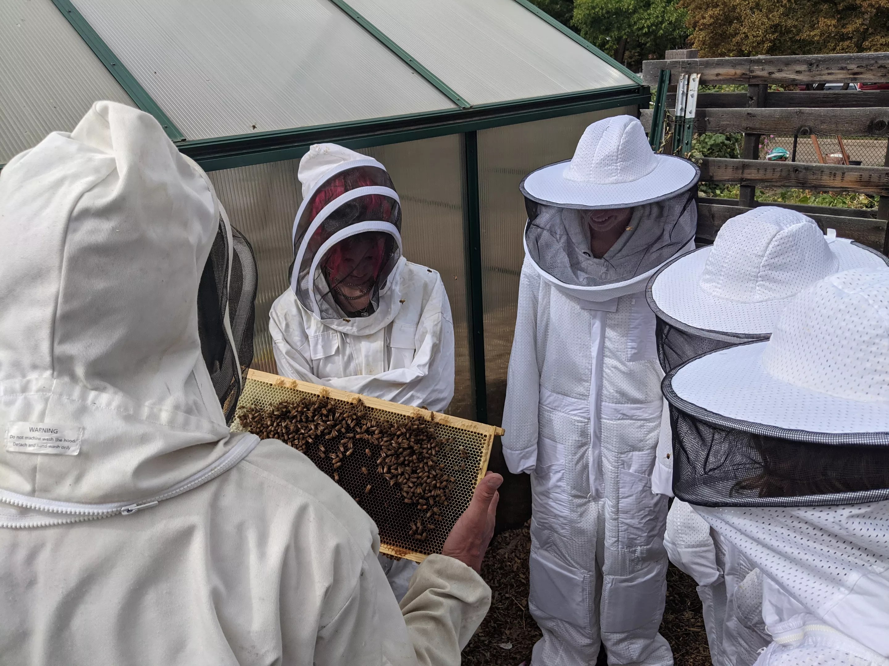 The team visits the hives each month to monitor their health, checking to be sure there are bees at all stages of life inside, that the queen is tended to and that no parasites are infecting the hive. A main danger is the varroa destructor, a mite that infects beehives worldwide, rapidly reproducing inside hives and passing disease on to the bees. If the Free Range team discovers mites, it treats the hive with chemicals to eliminate them.
