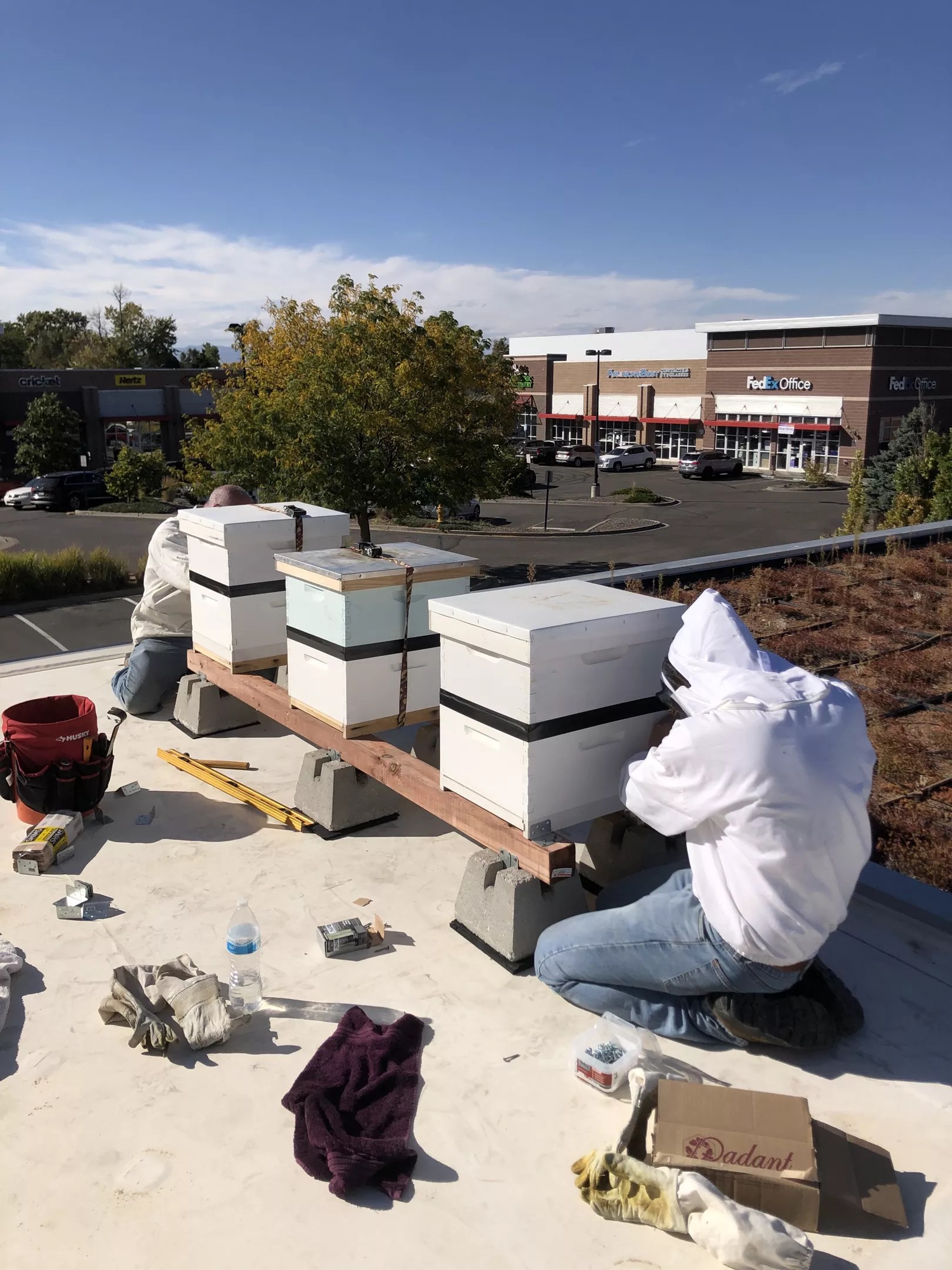 That’s where Free Range Beehives comes in. The year-old company founded by two father-son duos focuses on commercial beekeeping, installing hives on the properties of businesses rather than in people’s backyards. “As beekeepers, one of our key jobs is to make sure that our bees have stored enough honey by this time of year to make it all the way through winter,” says CEO Mike Rosol, a master beekeeper. “If they haven’t stored enough honey on their own, that’s when we should supplemental feed them.”