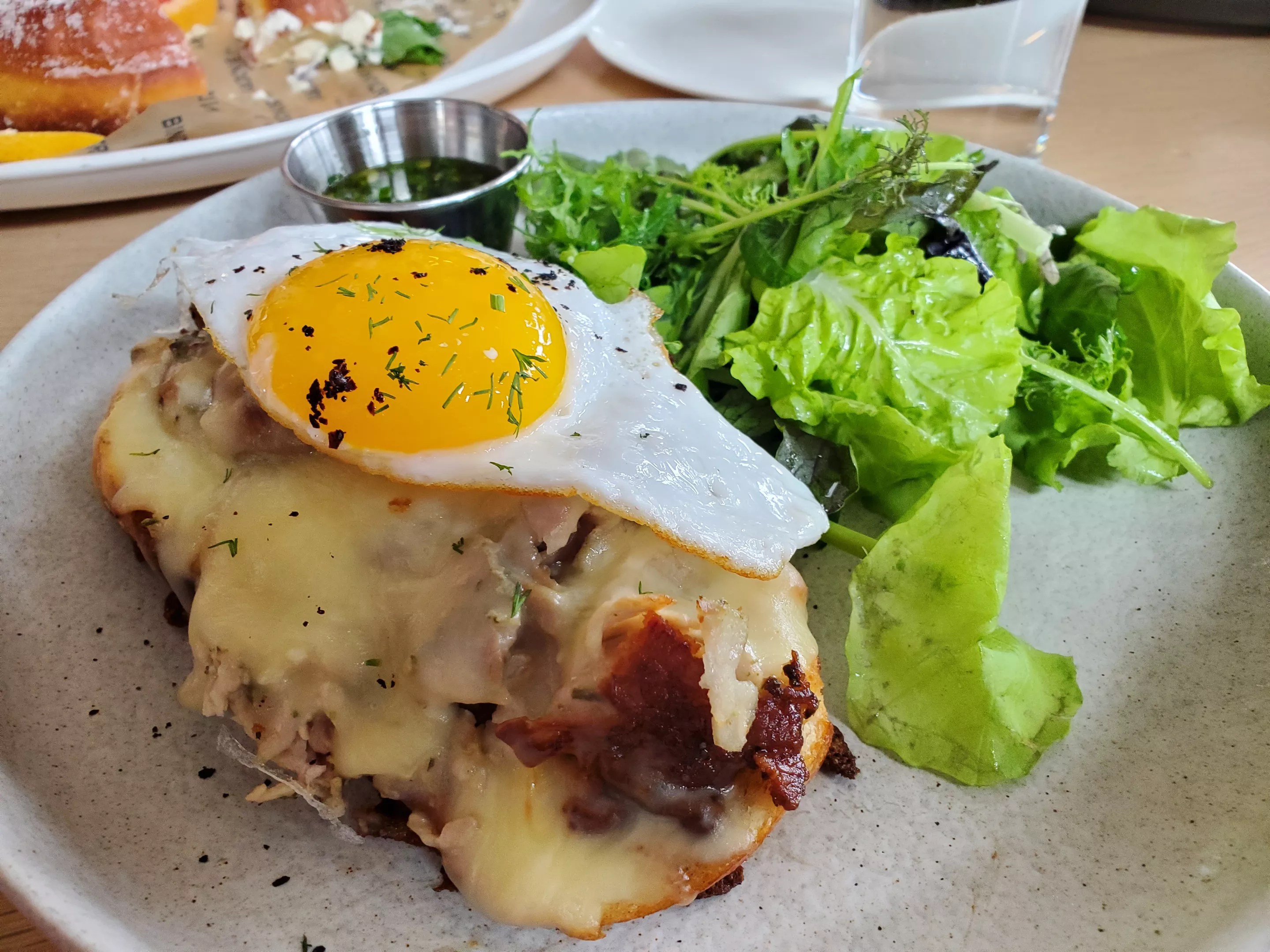 Over at one of our picks for the best brunch spots in town, the Bindery in LoHi, chef Linda Hampsten Fox recently added something new to the lineup, and it was the favorite at a recent meal. While it’s always a good idea to order a pile of pastries for the table here – and the sweet or savory version of the Dutch Baby is a showstopper – this open-faced porchetta sandwich on sourdough was a particularly pleasing way to spend a Sunday. It’s made with sage butter and covered in melted Jack cheese with a side of chimichurri and a dried duck egg on top for good measure.