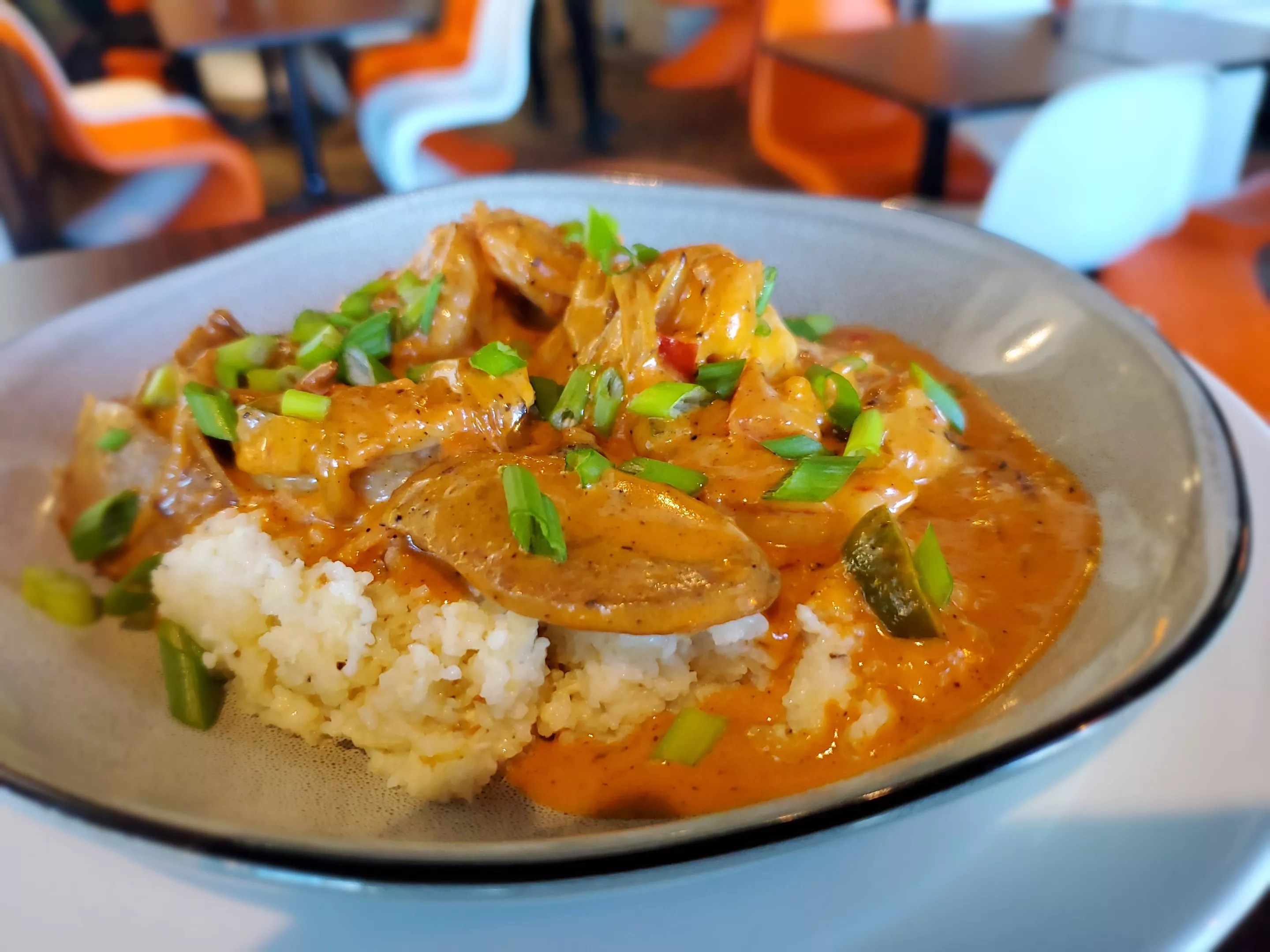 A creamy, cheesy take on shrimp and grits at Mimosas.