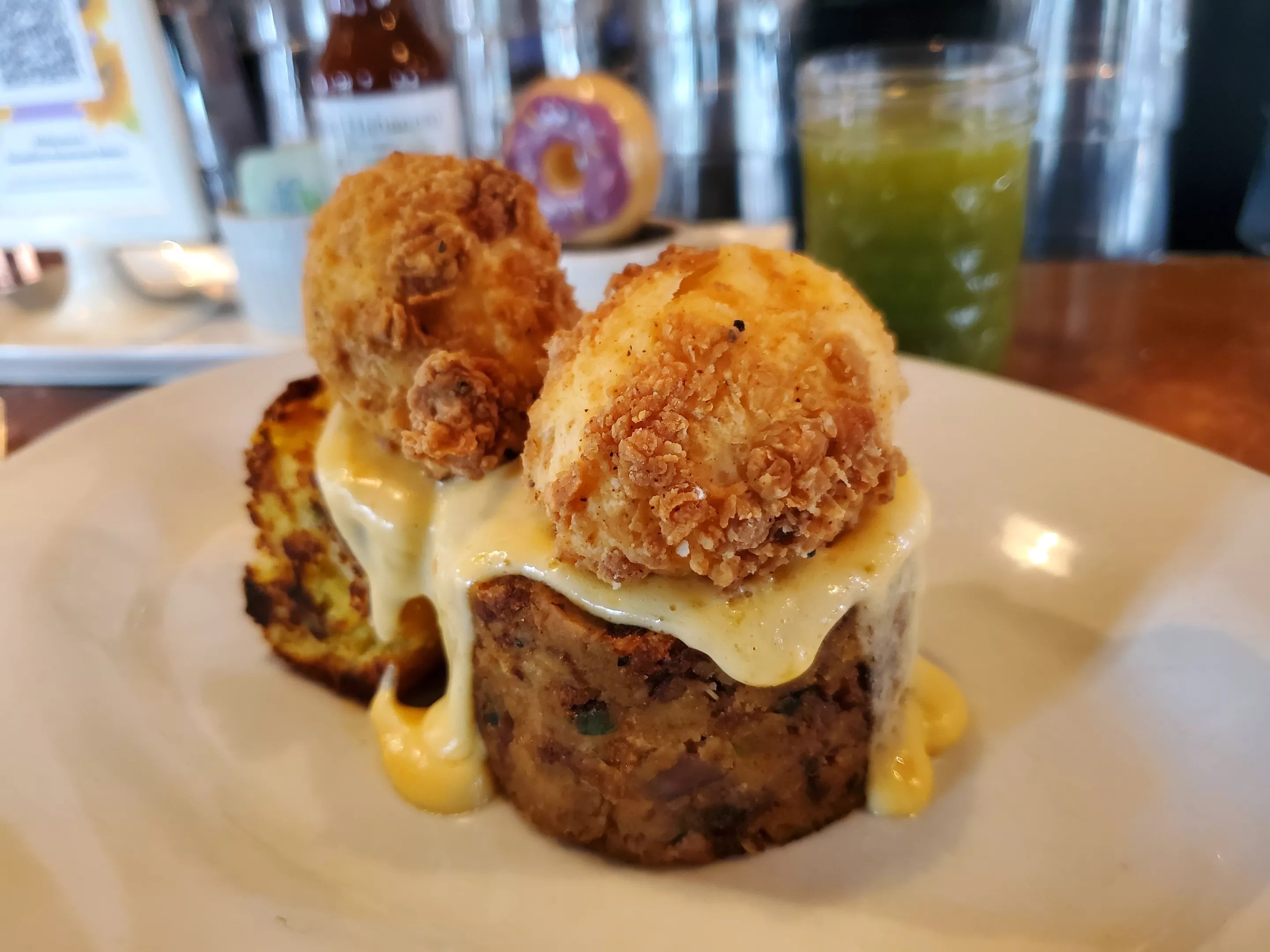 Chicken-fried eggs on bison hash is a longtime staple at Sassafras.