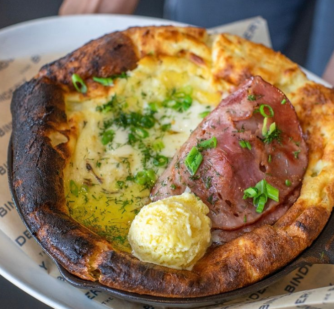 The Dutch baby pancake at the Bindery is available in both a sweet and a savory option.