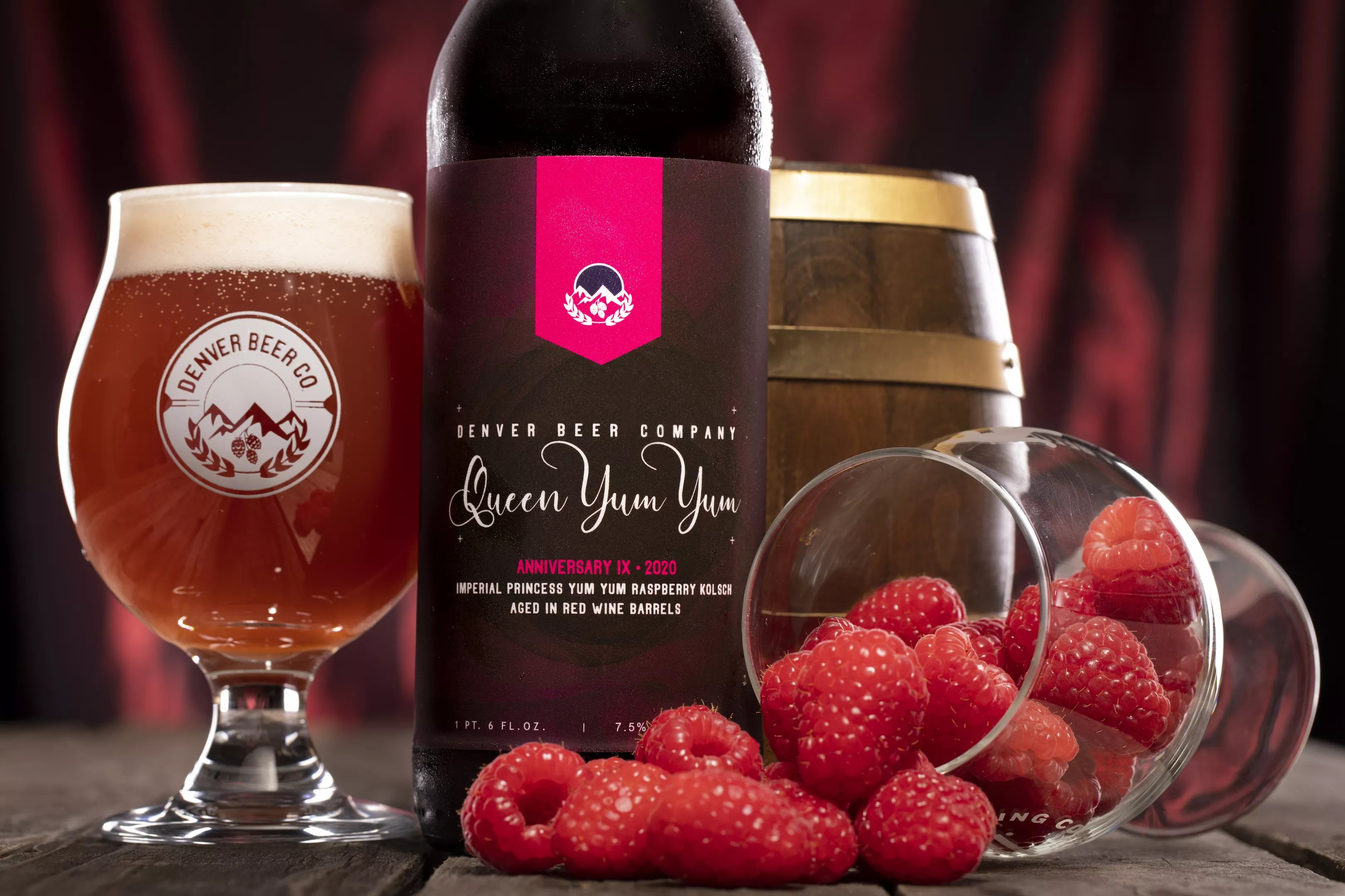 Denver Beer Co. kicks off a four-day celebration of its ninth anniversary today by releasing Anniversary IX: Queen Yum Yum Red Wine Barrel Aged Raspberry Kolsch. This beer is a slightly stronger version of the brewery’s Princess Yum Yum fermented with red raspberries and aged for five months in mixed red-wine barrels for “a delightful combination of fresh raspberry, oak and fruit flavors.” Queen Yum Yum is available in limited-edition bombers and on draft; there will also be anniversary tumblers for sale.