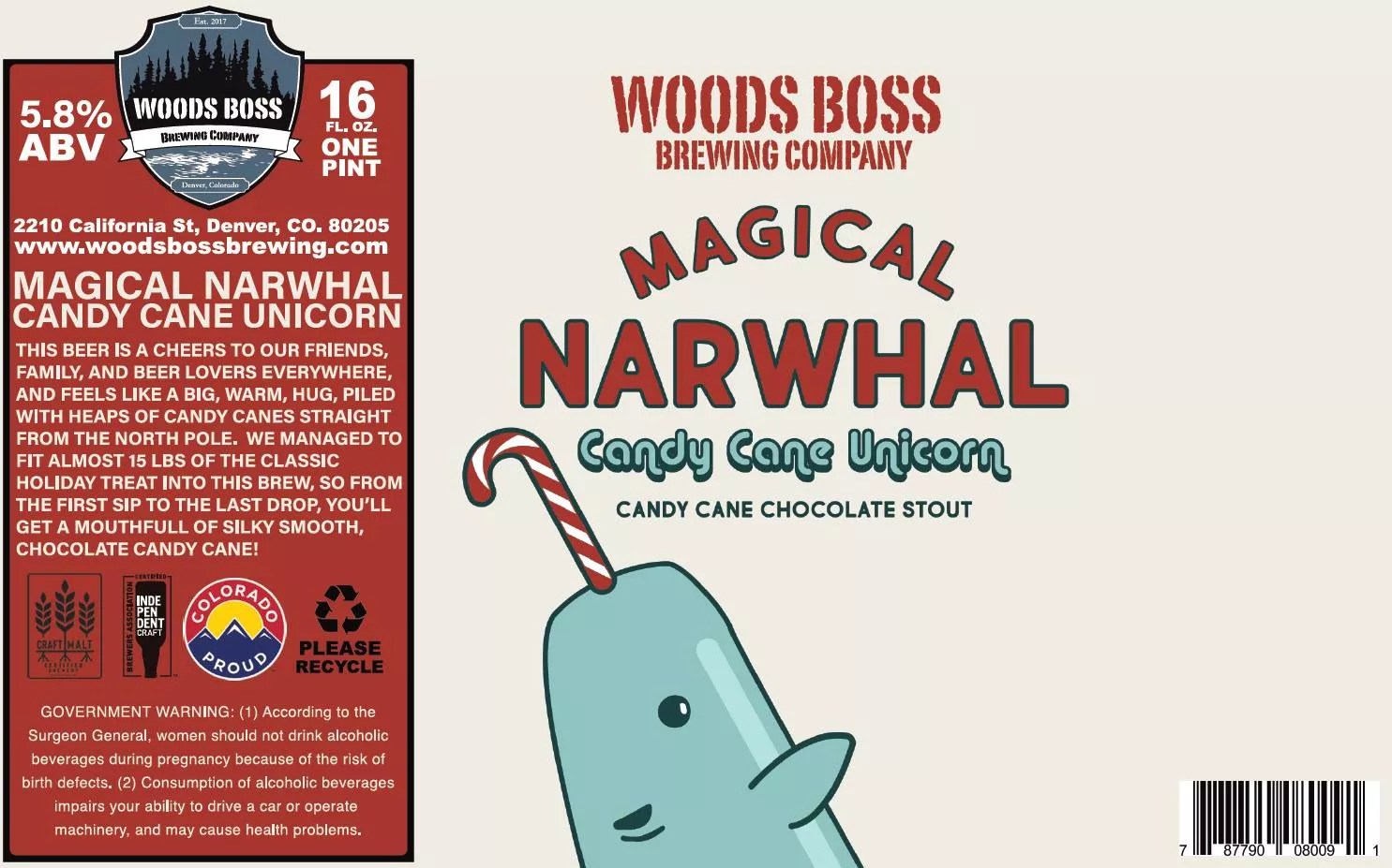 Woods Boss Brewing brings back Magical Narwhal, a milk stout brewed with fifteen pounds of peppermint candy canes. “This beer is a cheers to our friends, family and beer lovers everywhere, and feels like a big, warm hug, piled with heaps of candy canes straight from the North Pole,” the brewery says.