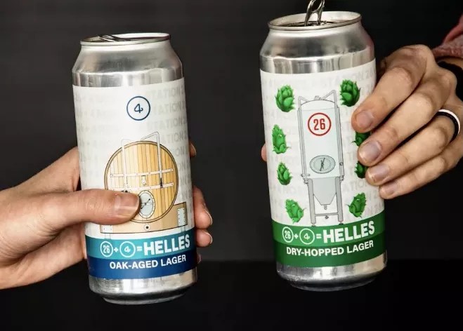 Station 26 Brewing and 4 Noses Brewing have teamed up to create two versions of the same German-style Helles lager being released today in eight-packs that includes four cans of each. The beer, which is called 26 + 4 = HELLES, was brewed at both breweries with Pilsner malt from Leopold Brothers. Then 4 Noses aged its version in its oak foeder. “The oak imparts a subtle hint of vanilla and dry tannins reminiscent of white wine,” the brewery says. Station 26, meanwhile, decided to dry-hop its batch with Galaxy and Nelson Sauvin, the latter hop also having white-wine notes. The beers should also be on tap at their respective breweries.