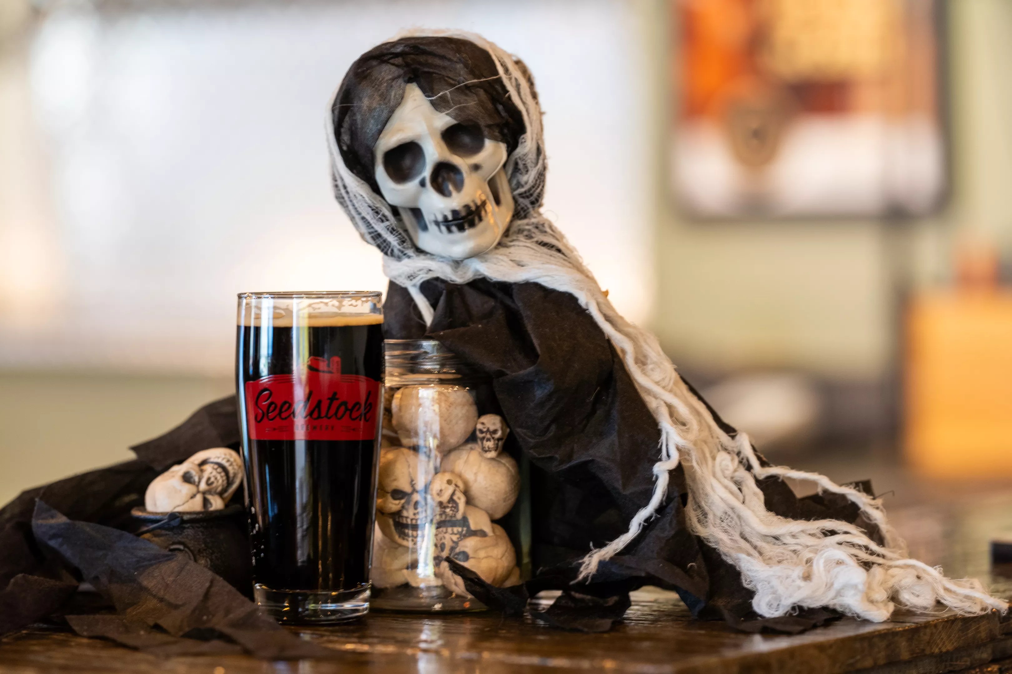 With Halloween falling on a Saturday, Dos Luces Brewing decided to combine its Día de los Muertos celebration with Halloween and the annual release of its very special Azteca Pulque, which was made with cacao and a hint of cayenne. There will also be pumpkin-spice chicha, which will only be available in small-batch form this year.