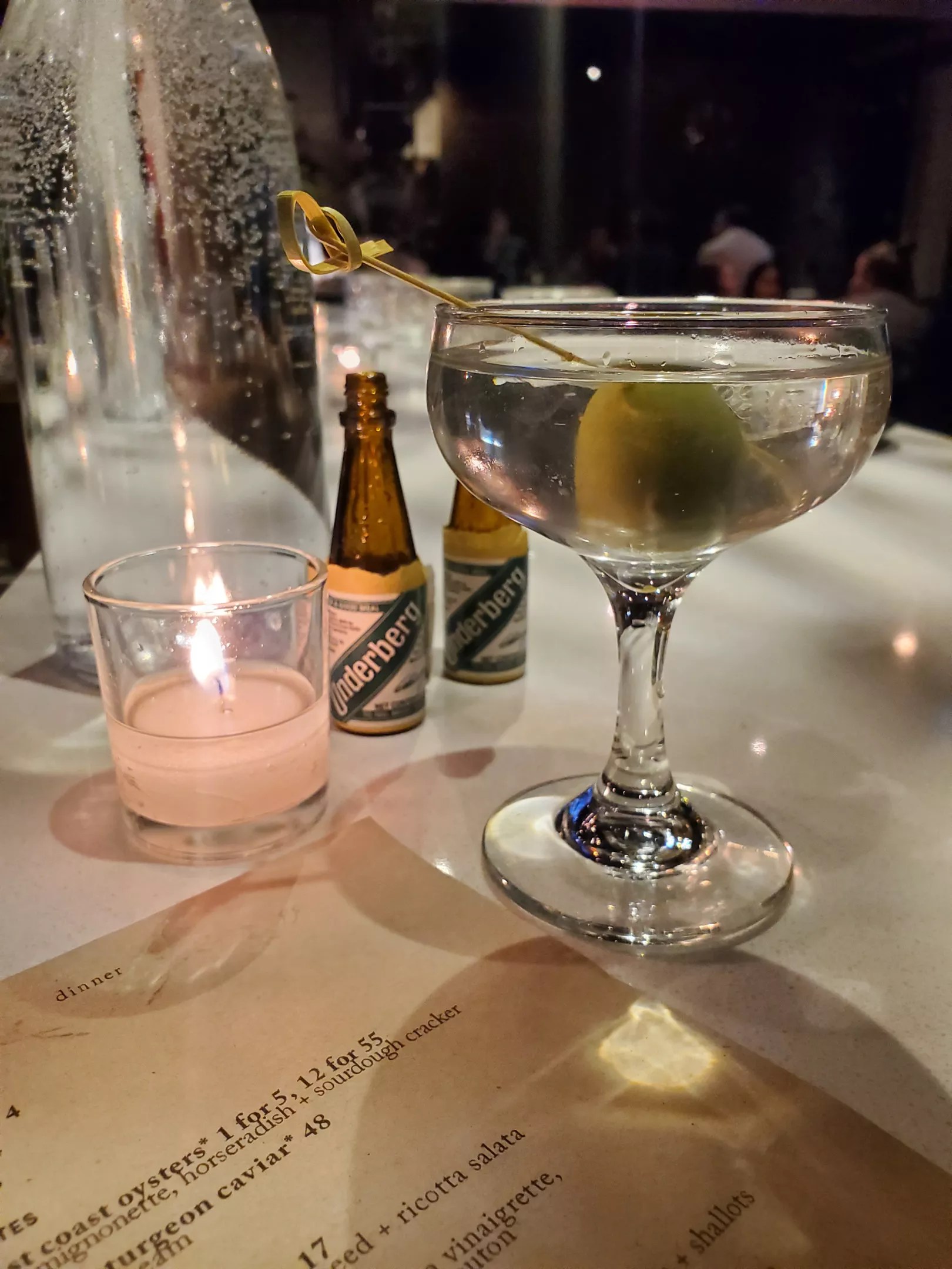 A martini lover, I’ve had versions of the cocktail all around town, including Annette, chef Caroline Glover’s Stanley Marketplace eatery. I usually hit up this spot early for happy hour, when I opt for a standard martini, dirty, because it’s one of the seven classic cocktails on special for $10. But after my meal at Lucina, I popped by for a nightcap and went for a shooter of Underberg, a digestif that’s ideal after a big meal, and the Annette Martini. Now there’s no going back. It’s the perfect balance of flavors, made with Leopold Bros. Navy Gin, Dolin Dry Vermouth, Salers aperitif, Rhine Hall Pear Brandy and lemon oil, plus a Castelvetrano garnish.