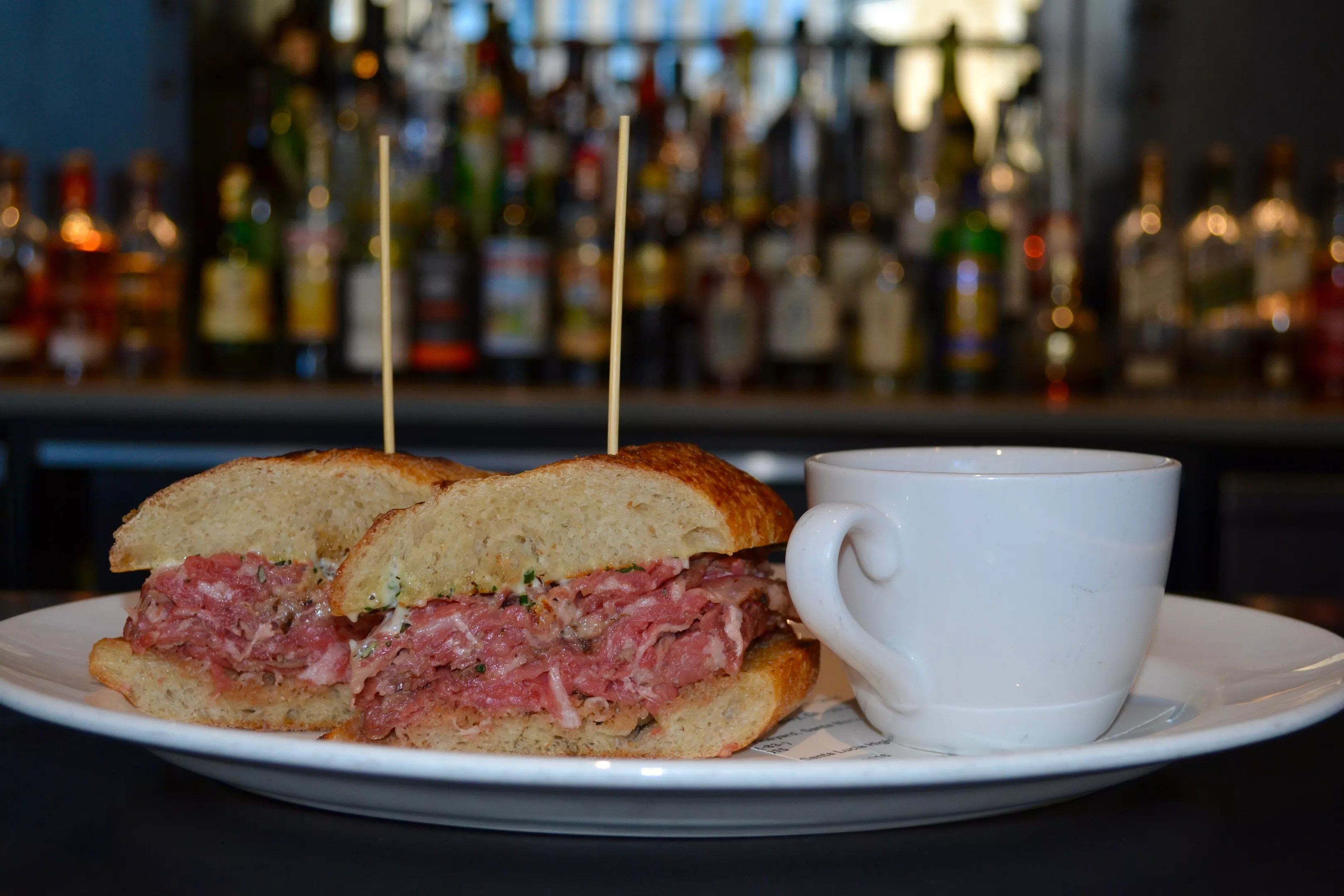 1600 15th Street 303-623-0534 a5denver.com With so many great meaty options at A5 Steakhouse, why should a simple sandwich be at the top of the list? One reason: wagyu beef, which comes sliced paper-thin and piled high on top of a soft, pre-dipped baguette. Like everything chef Max MacKissock sources for the restaurant, the beef is some of the best he can find. The sandwich also comes with a healthy slathering of horseradish and spicy mustard, which cuts the richness of the tender meat. Find the $14 dip during happy hour on the bar menu only, giving guests the opportunity to watch the cocktail show while dining.