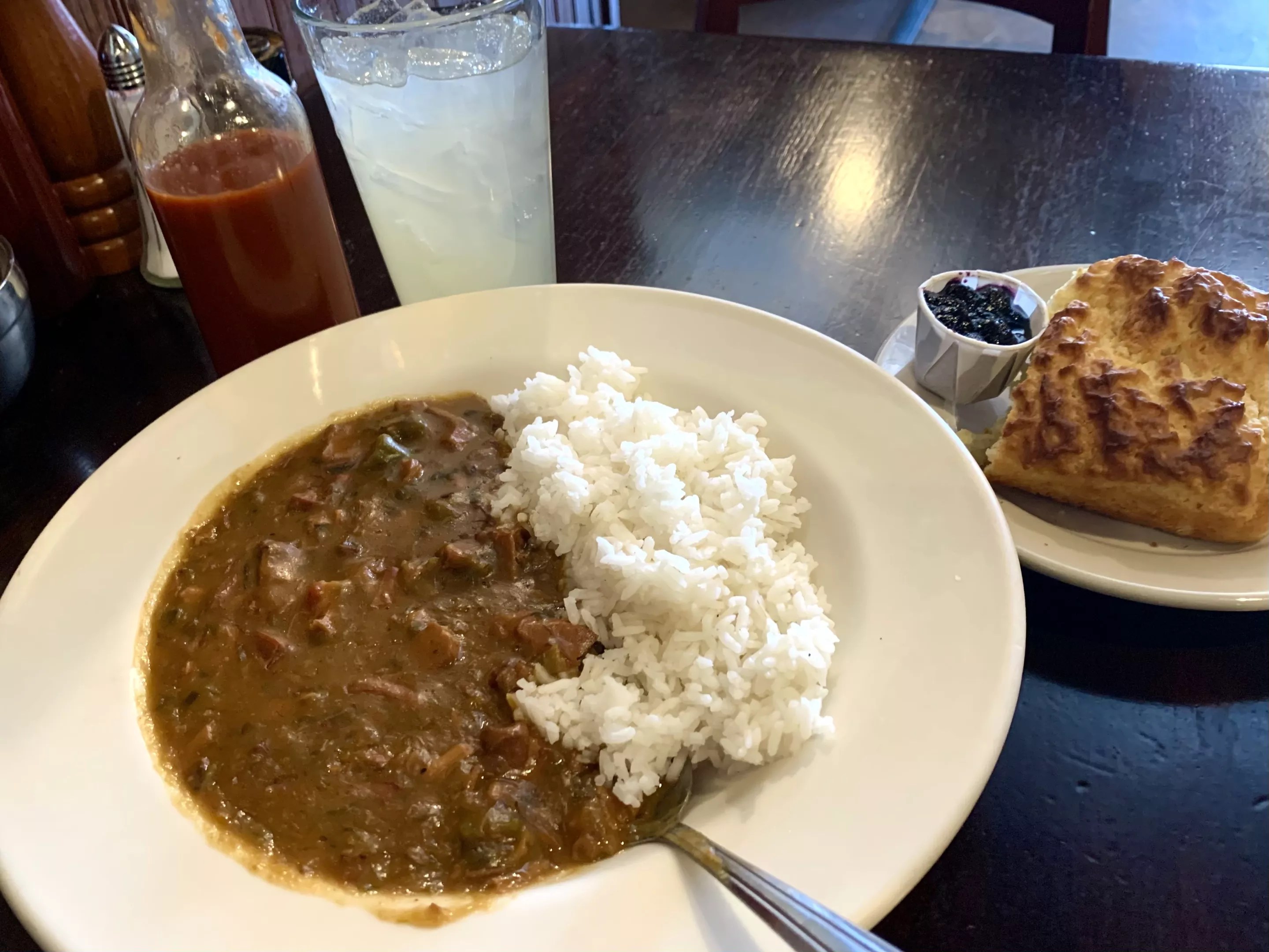 The Asian Cajun Lucile’s serves its bowl of gumbo with its famous biscuit. Staci Berry
