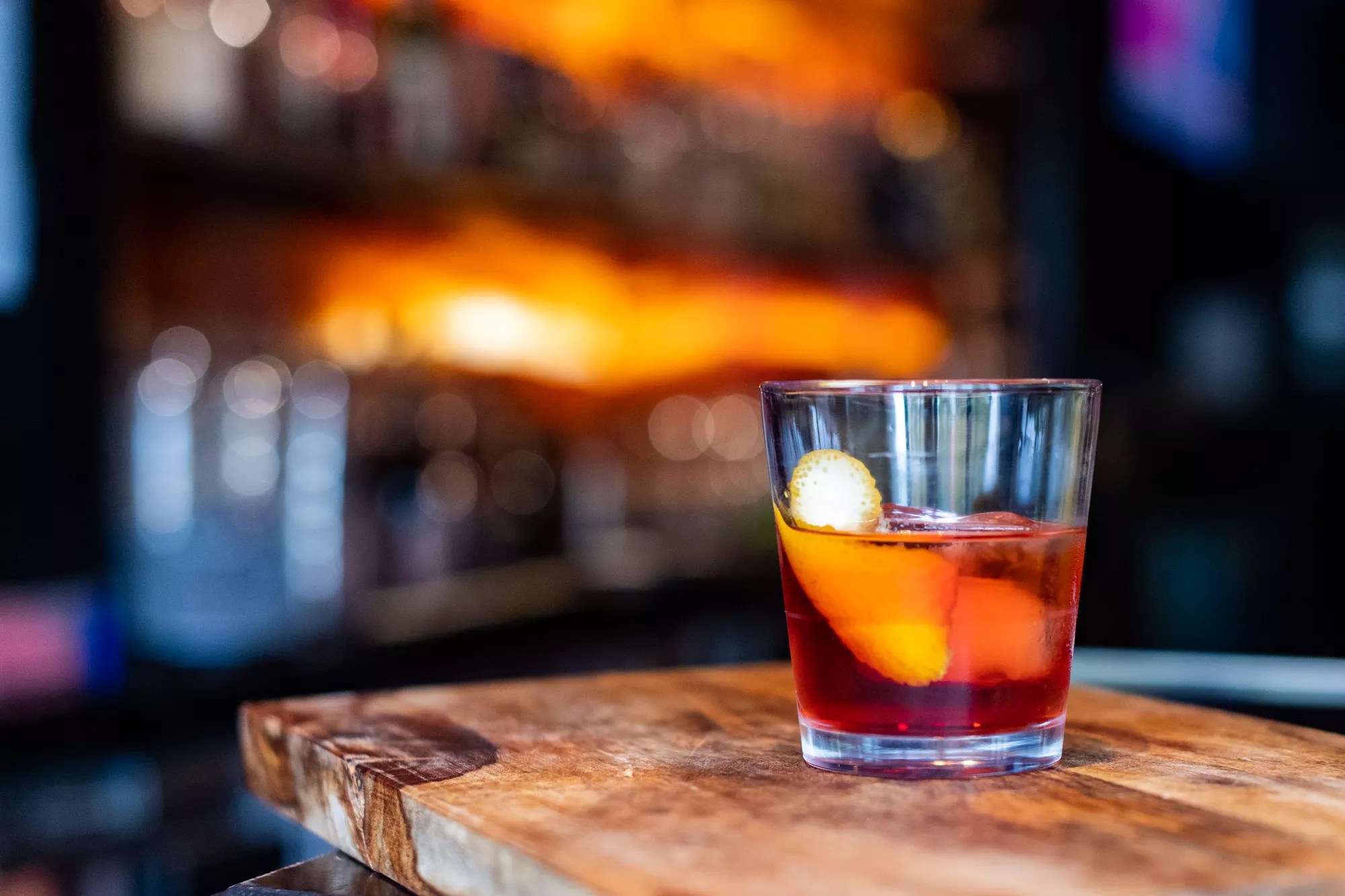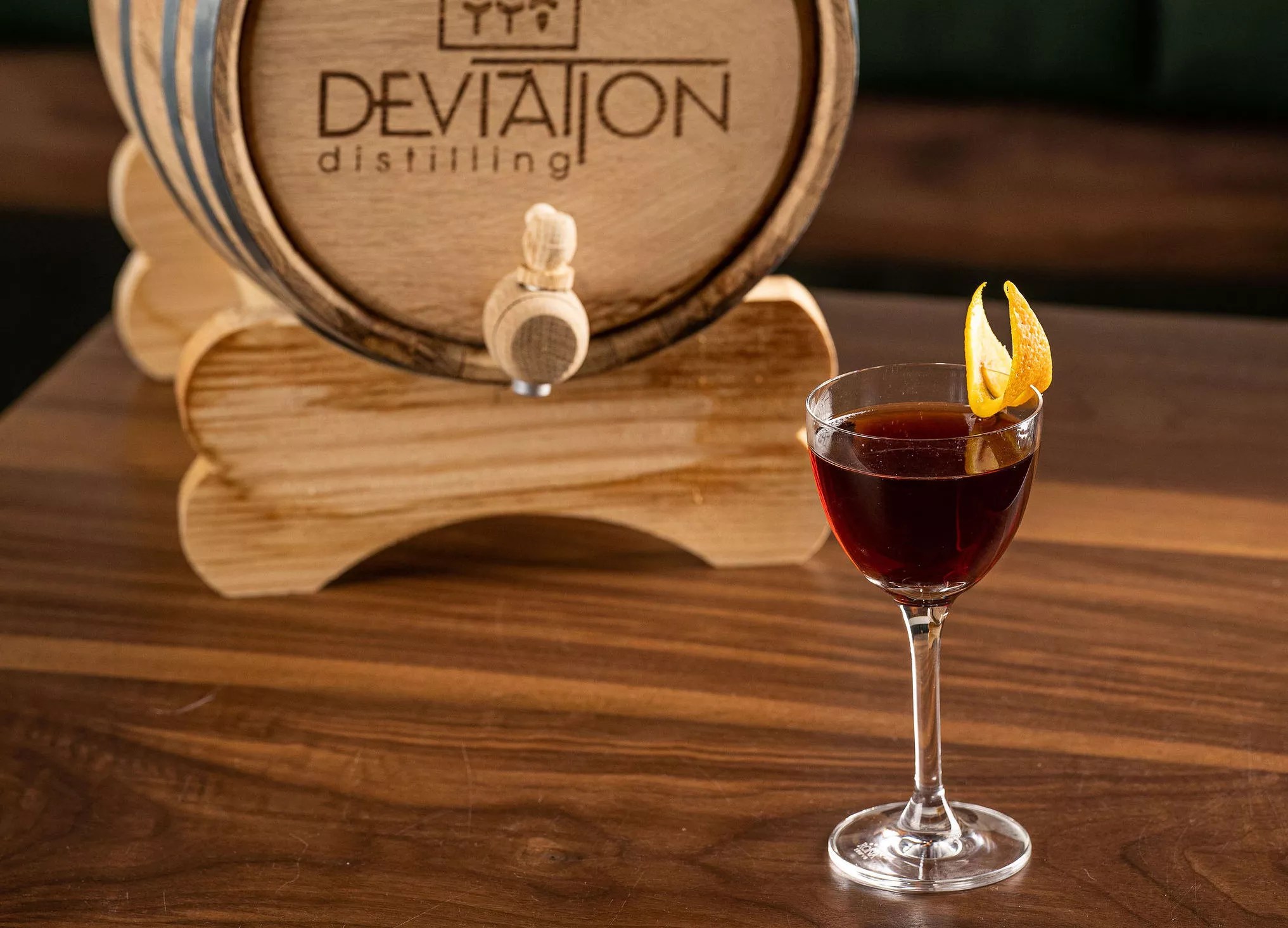 Barrel-aged Negroni at Deviation Distilling’s tasting room downtown. Deviation Distilling