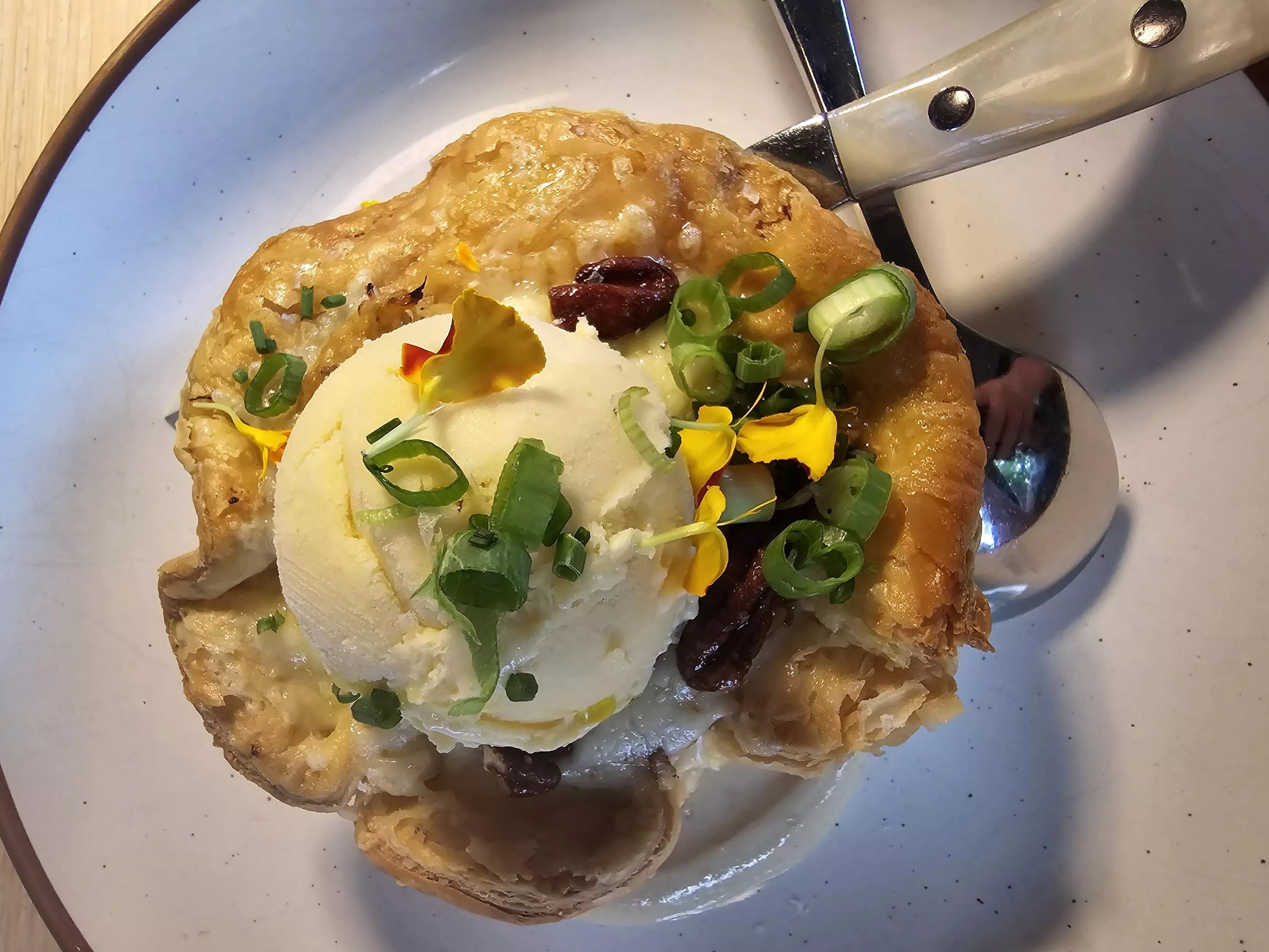 More than four years later, it’s still a hit. The flaky pie crust, the subtly smoky, rich rabbit, the bite of sharp cheddar and the unexpected but totally perfect addition of mustard gelato combine for a memorable dish.