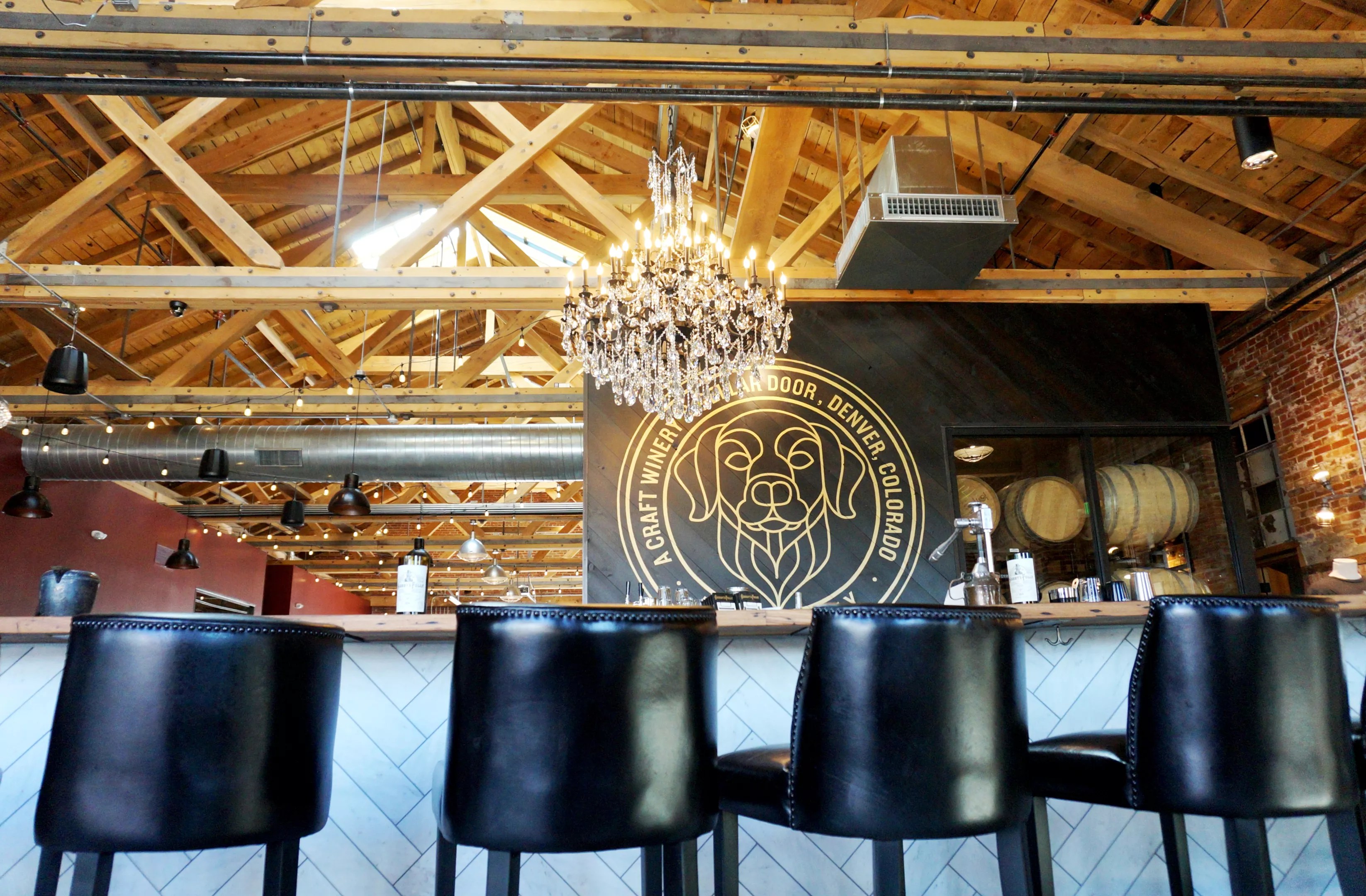 That Denver connection is evident in the building and its handsome design, as drawn up by Xan Creative, which has amassed a considerable resume of top Denver restaurants, and executed by P.G. Arnold Construction. The building itself dates back to the late 1800s and was once a factory for mining equipment; photos of the original factory and its employees grace the entryway of the winery. Inside, garage windows face the railroad track and the new pedestrian bridge that will soon connect the two currently bisected halves of the RiNo district. Next door, Zeppelin Station, a multi-story, multi-use property that will house business offices and ground-floor retail, is slowly rising;its tenants will add to the winery’s customer base once the facility opens.
