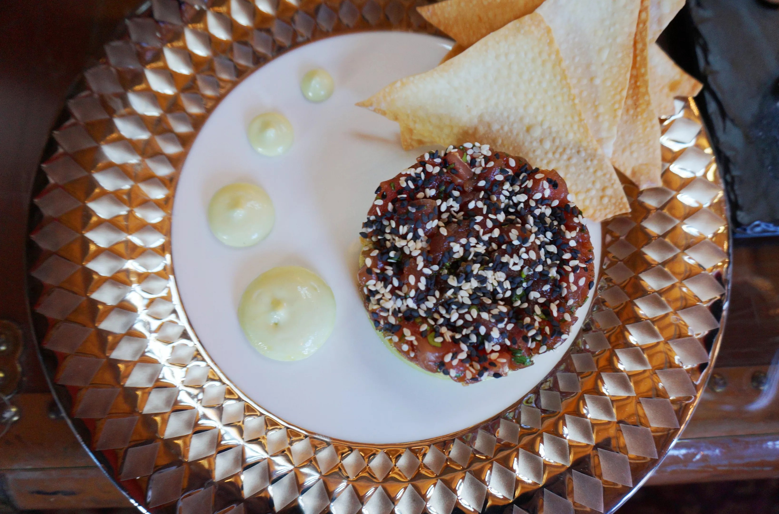 Tuna tartar with avocado and wasabi crema.