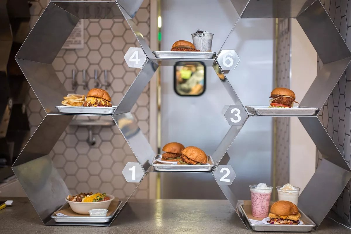 With a few taps on a touch screen to answer on-screen prompts – “Make this a combo?” – you breeze through the roster of sandwiches, salads, fries and shakes, adding sauces or other extras to get your food just the way you want it. Then you pay with a swipe and step aside, keeping an eye on the countdown clock with your name on it until your food is delivered to a shiny, beehive-like bin. Cool, huh? If you’re a tech junkie, your brain is probably on fire right now. If you’re a closet fan of fast food and ready to come out of hiding, you’re surely reading this on your device as you race to the car, since antibiotic-free chicken and scratch salad dressings take away some of the stigma. And forget those holiday visions of sugarplums: Food-industry folks will surely sleep sweeter tonight, dreaming of savings from no cashiers or servers to hire, train and compensate. Besides an expediter, who delivers paper sacks in about six minutes to the pick-up station, the only front-of-house employee is a “bird tender” (Birdcall’s term, not mine) whose role is to process cash orders and provide hospitality (again, Birdcall’s term, not mine, since hospitality seems almost oxymoronic in an automated fast-food joint).
