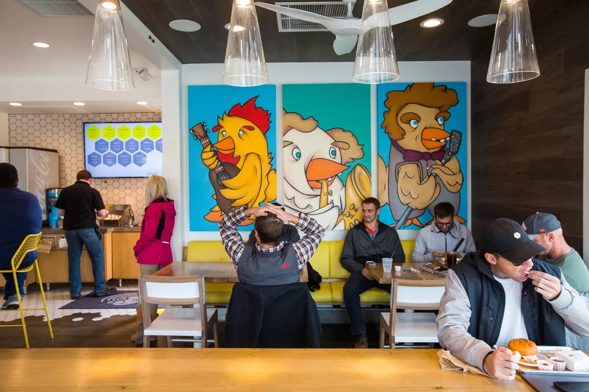 If I were a technology reporter or food blogger who’d been treated to a press lunch, with everything cooked and plated as if it were headed for a photo shoot, I’d be writing a different piece right now about Birdcall. (I’d also be making the name all lowercase, as the owners request.) Because the official story of Birdcall, a high-tech pioneer in the restaurant industry, is a page-turner. Who wouldn’t be captivated by how the owners of this fast-food chicken joint – the same crew behind Park Burger and Homegrown Tap & Dough – solved the dilemma of turning a profit in the food industry by replacing humans with bright-yellow ordering kiosks?