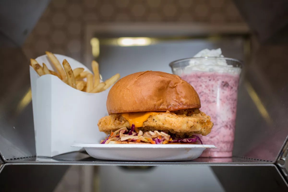How to account for the difference? Was this chicken pulled fresh from the pressure fryer, and the others cooked and held? Was there a variation in the recipe? That’s unlikely, but the milkshakes are made differently depending on location, with higher-quality hard-serve from locally owned Liks at Whole Foods, and runnier, sweeter soft-serve in Five Points that gets gritty from over-pulverized cookie crumbs. Or was that one remarkable breakfast sandwich – picture-perfect, with pimento cheese that melted on contact with the generous portion of hot, crispy bird, a baked egg and long strips of bacon that crisscrossed and draped well off the bun – simply better because the chicken had been left longer in the fryer? Who knows?