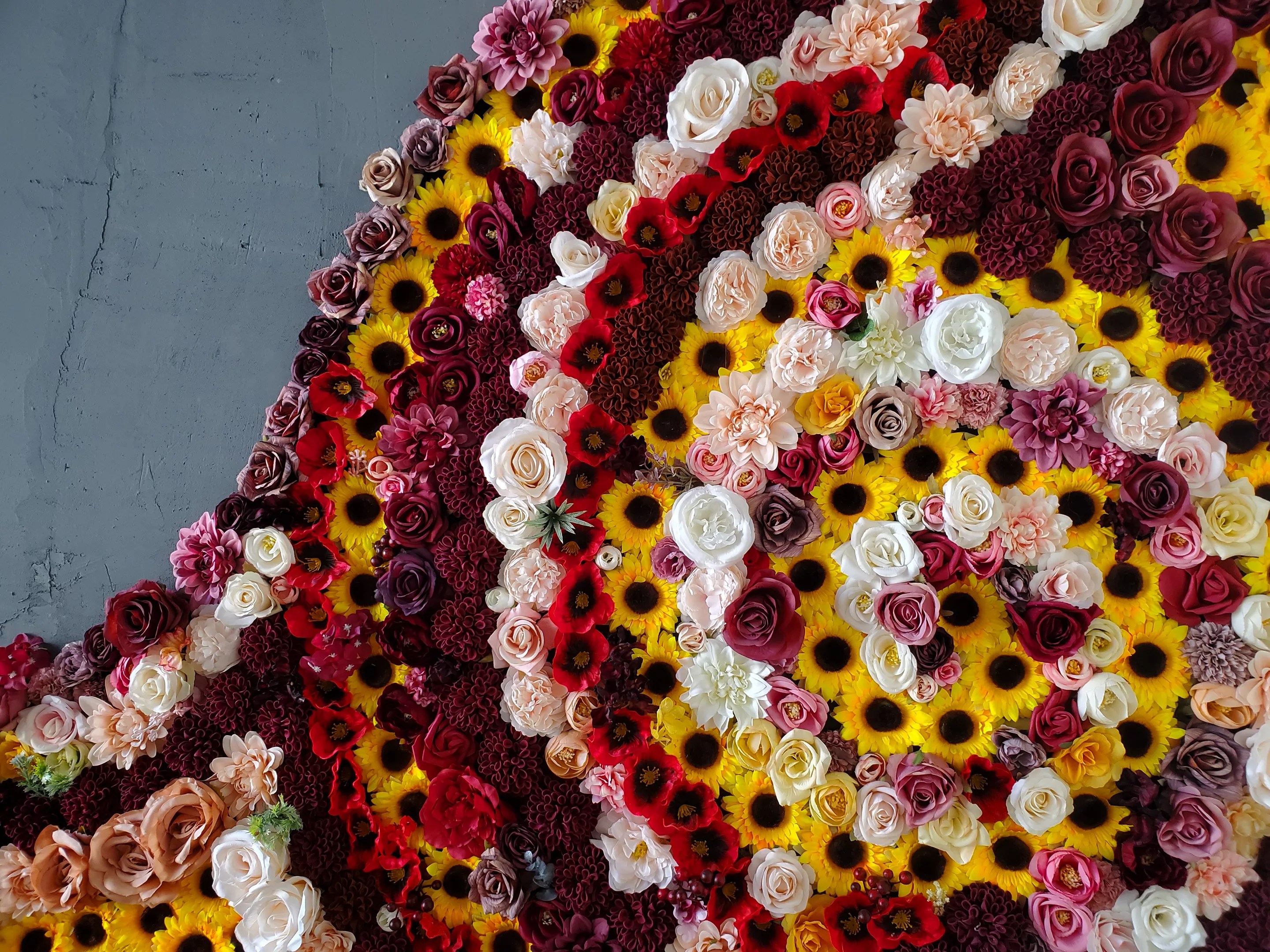 One wall above the bathroom is covered in a floral design inspired by Ukrainian headdresses called vinoks.
