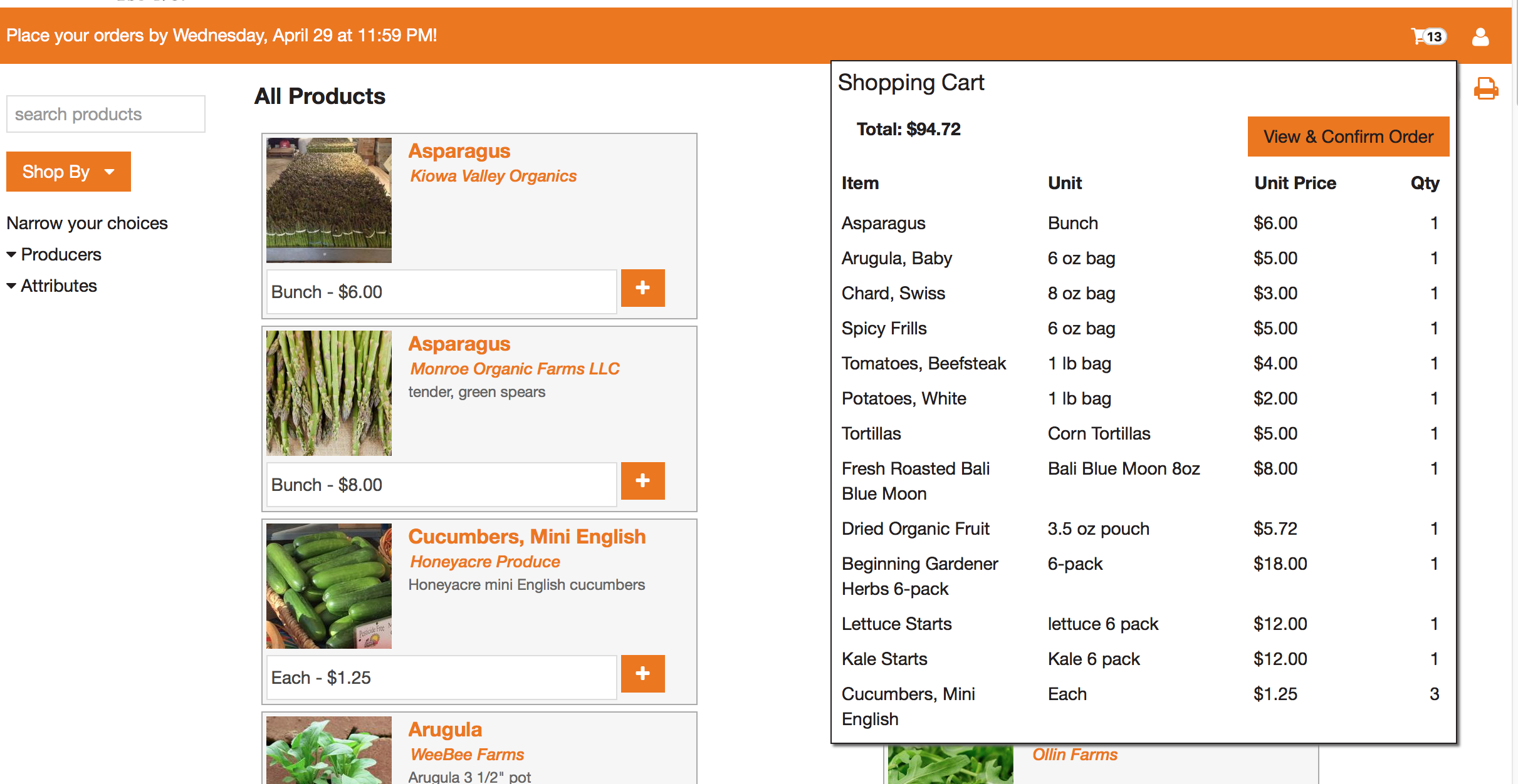 What the digital farmers’ market ordering screen looks like.