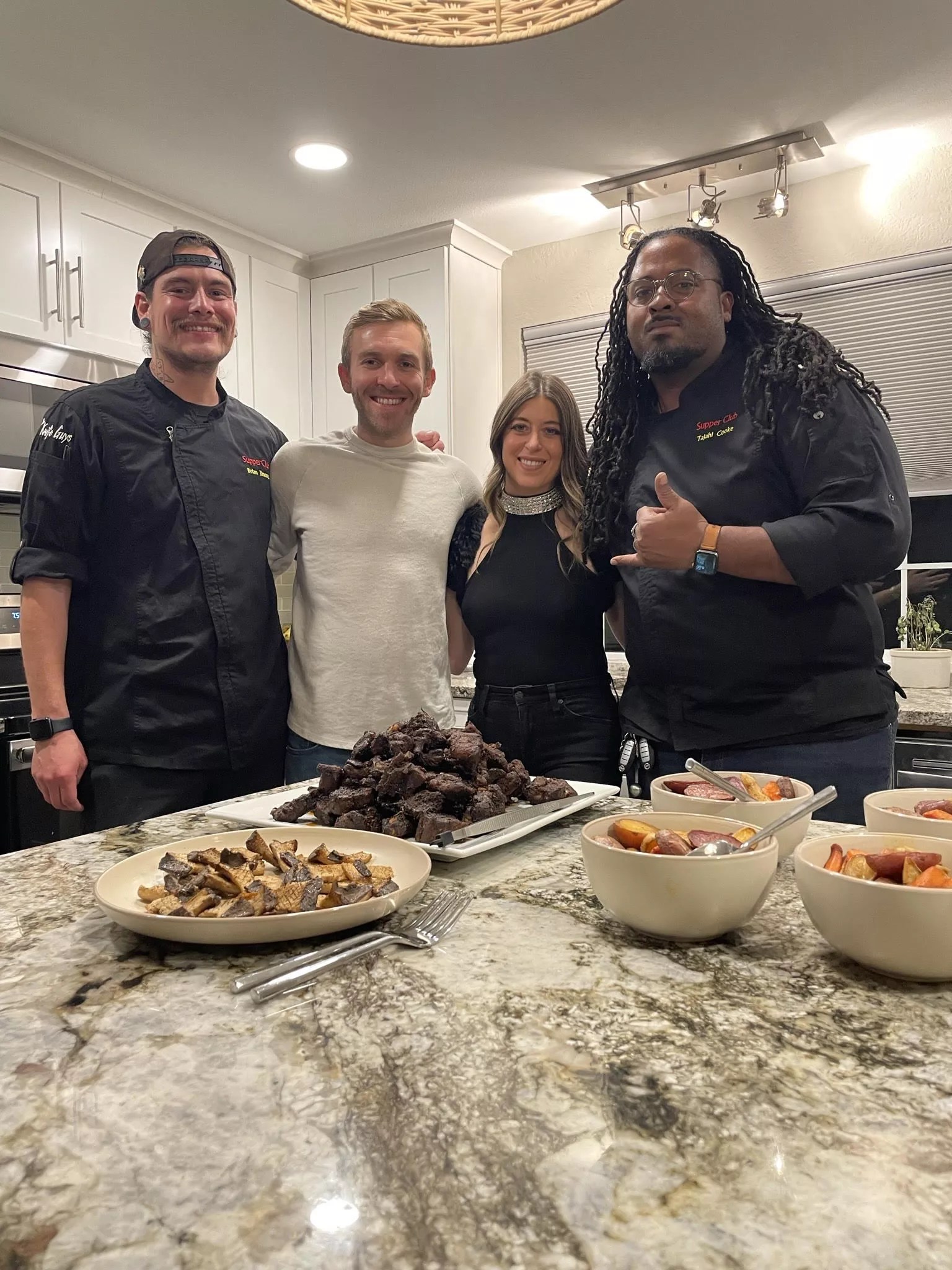 From left to right: Chef Brian, Deuce Thevenow, his wife, Jillian Chatoff Thevenow, and Tajahi Cooke.