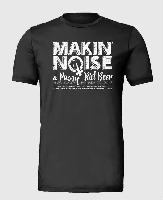 In Denver, part of that protest took the shape of beer. In late December and early January, five Colorado breweries – Goldspot, Black Sky, 3 Freaks, Lady Justice and Brewability Lab – joined forces with women from at least a dozen other breweries to create five versions of Makin’ Noise: A Pussy Riot Beer, an imperial saison that was then tapped at five locations on January 20, Inauguration Day.