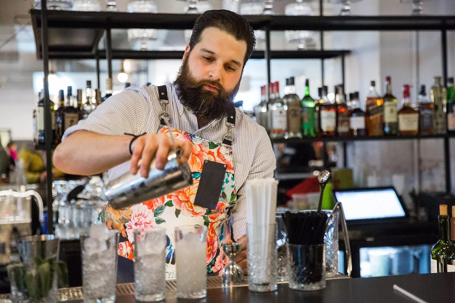 There are plenty of seating options inside the market, from high-top tables to rows of banquettes to stools at Misaki’s raw bar and sushi bar. But if you want to shoot the breeze with the bartenders and enjoy a selection of house cocktails, the central bar is the place to be. Even if you’re not eating, Broadway Market’s bar is a great place to unwind at the end of the workday.