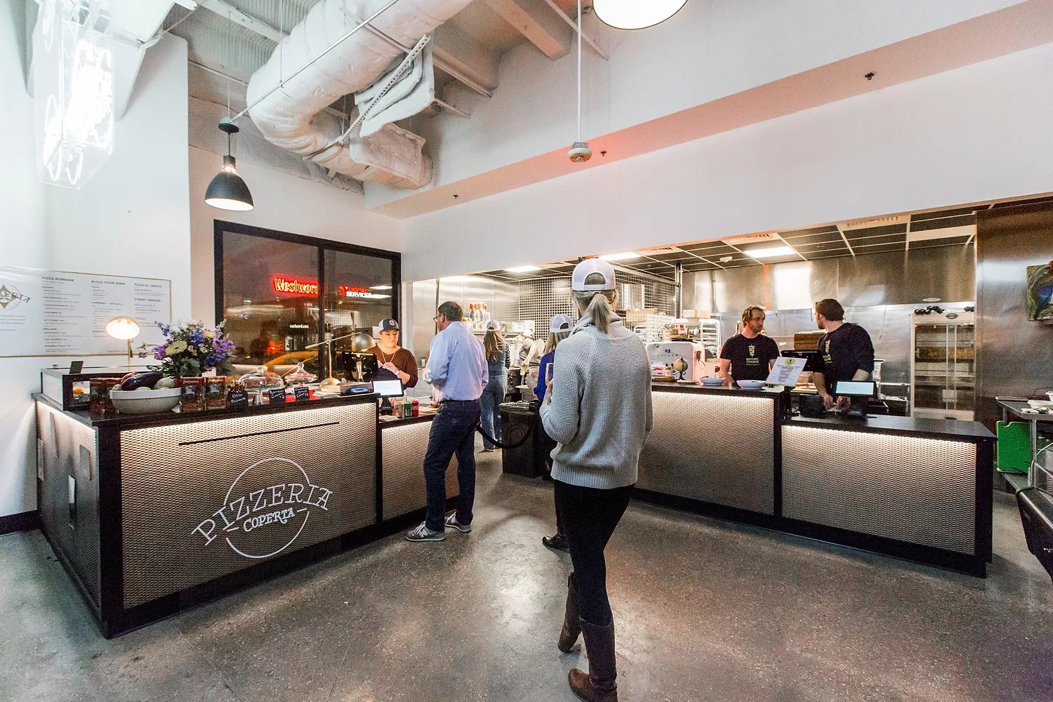 The doors open at 7 a.m., so you’ll be able to get coffee and espresso drinks made with Logan House Coffee beans at the counter near the front entrance, plus pastries and other breakfast items like empanadas from Maria Empanada. Most of the other counters start serving lunch at 11 a.m. and food service ends at 9 p.m. nightly, though the bar will continue serving drinks until 11 p.m. Sunday through Thursday and midnight on Friday and Saturday.