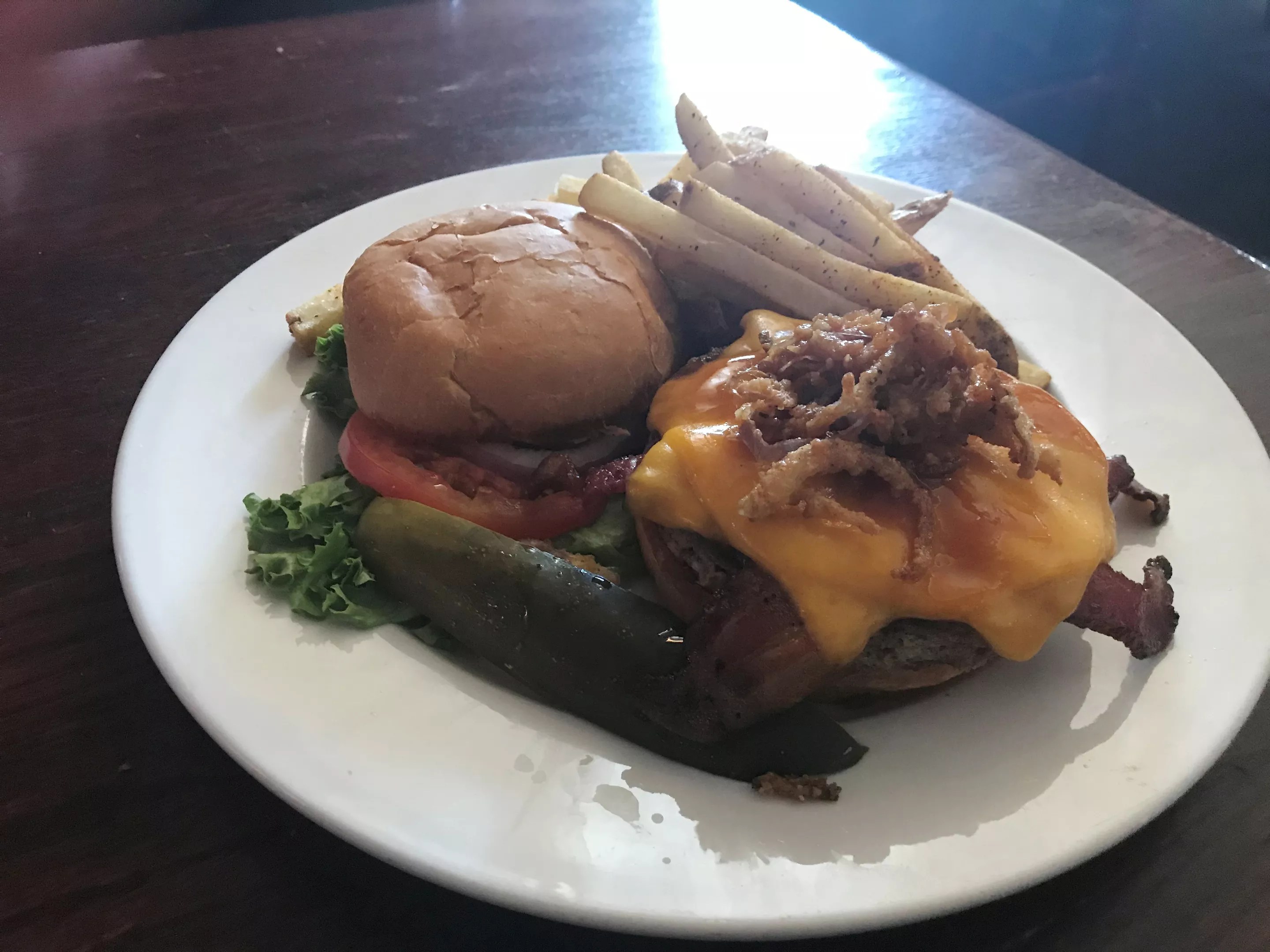 While the brunch menu is small, Hanson’s also offers its lunch menu during brunch – a great move since Vilante has a way with burgers. But of the half-dozen varieties listed, the chef surprisingly recommended the Impossible Burger. This is one of the few items not made in-house, but it turns out to be a great option for those avoiding meat, since it’s a vegan product (until you add cheddar and bacon, like I did) that’s nearly impossible to distinguish from ground beef. I subbed in the Impossible patty on Vilante’s Jameson burger, which is how the bacon and cheddar got there, along with a sweet sauce the chef makes by reducing two quarts of Jameson whiskey per batch (unfortunately, the alcohol cooks off in the process).