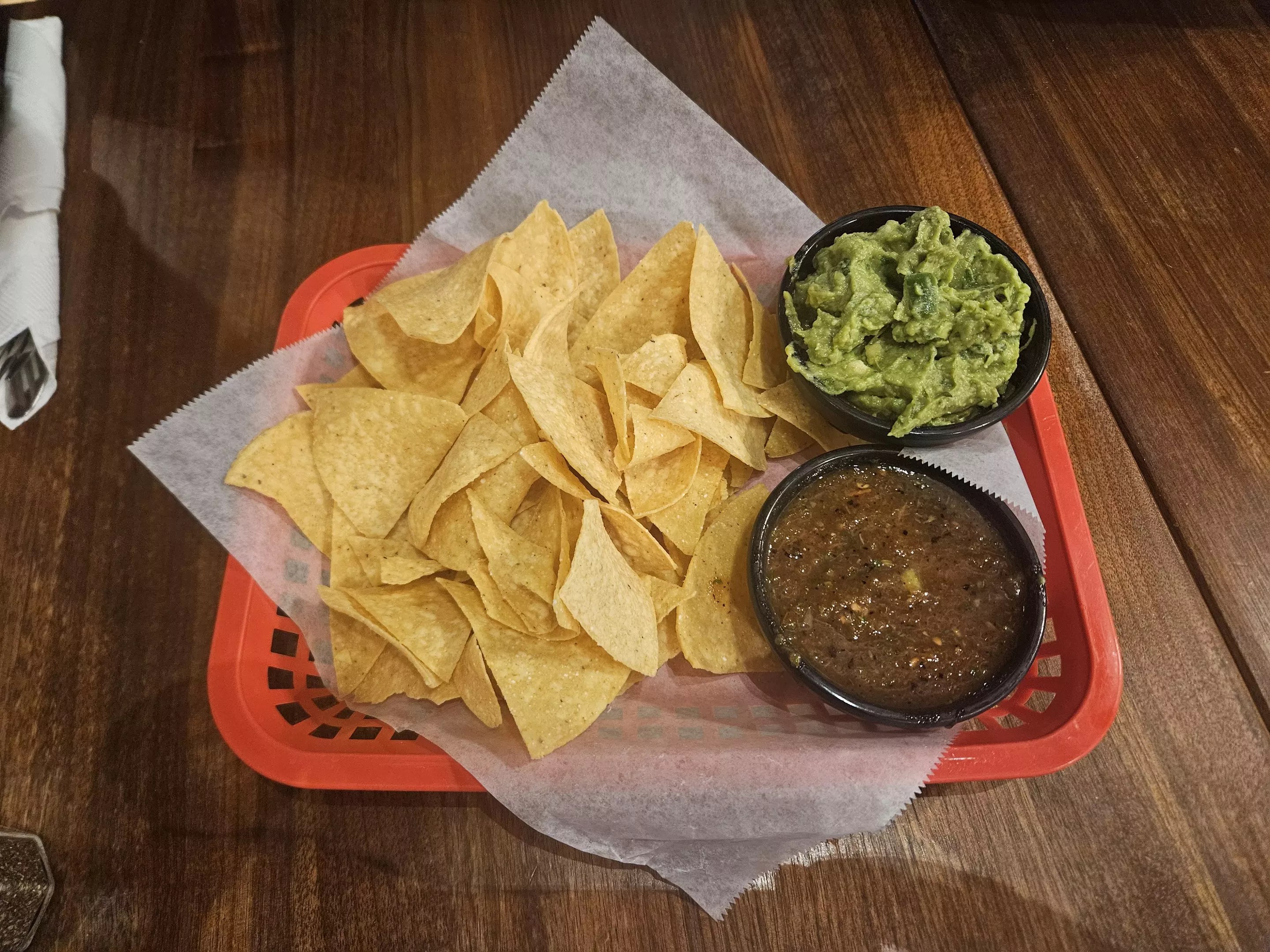 Chips with guacamole and Cencalli’s salsa tatemada.