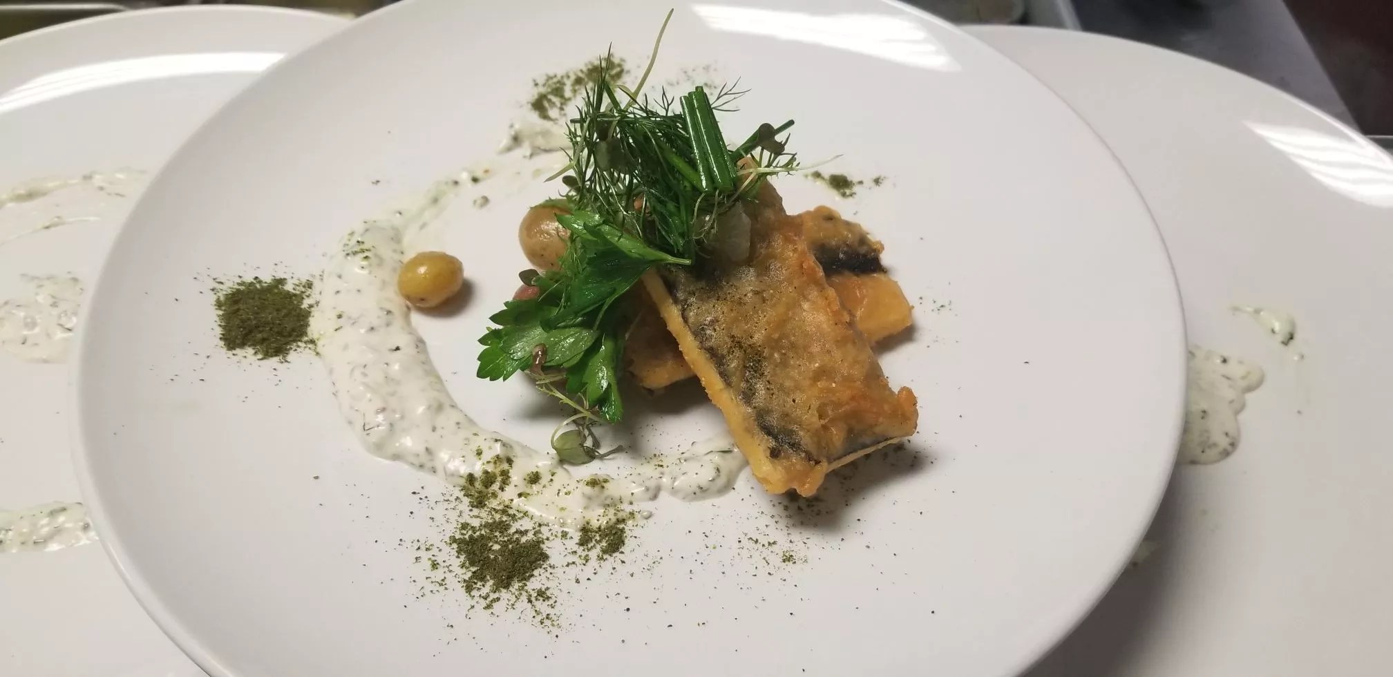 Charcoal Bistro‘s vegan dinner series has been welcomed with praise from both plant-based eaters and traditional diners. The Washington Park New American restaurant doesn’t typically serve vegan items on its contemporary, seasonal menu, but when executive chef Patrik Landberg learned that one of his cook’s girlfriend was vegan, they started tossing around the idea of doing a vegan dinner at the bistro. “Fish” fry at Charcoal Bistro’s vegan dinner series Charcoal Bistro