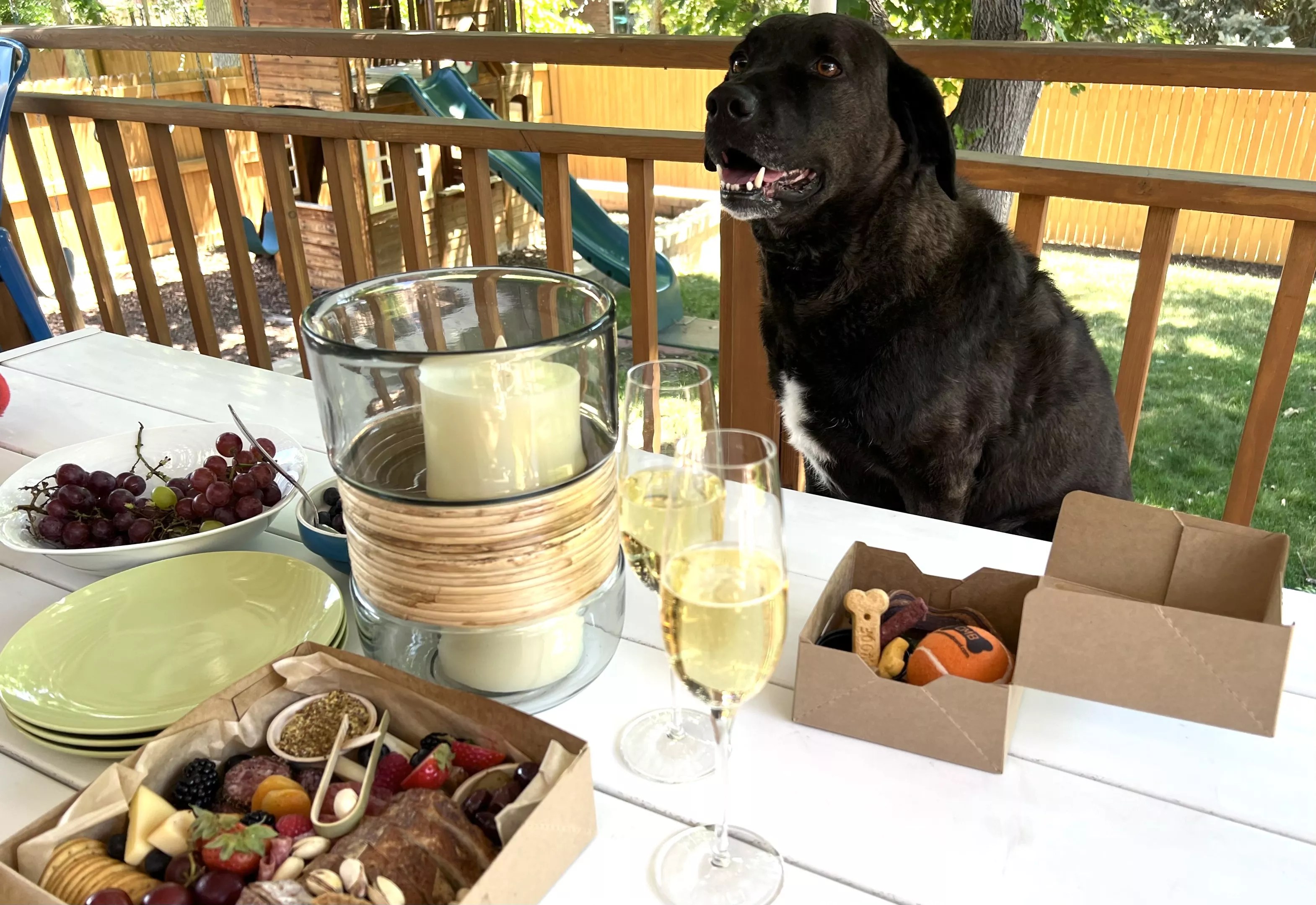 Cleo, a very good girl, enjoying her Charpoocherie from Cheese Meat Board.