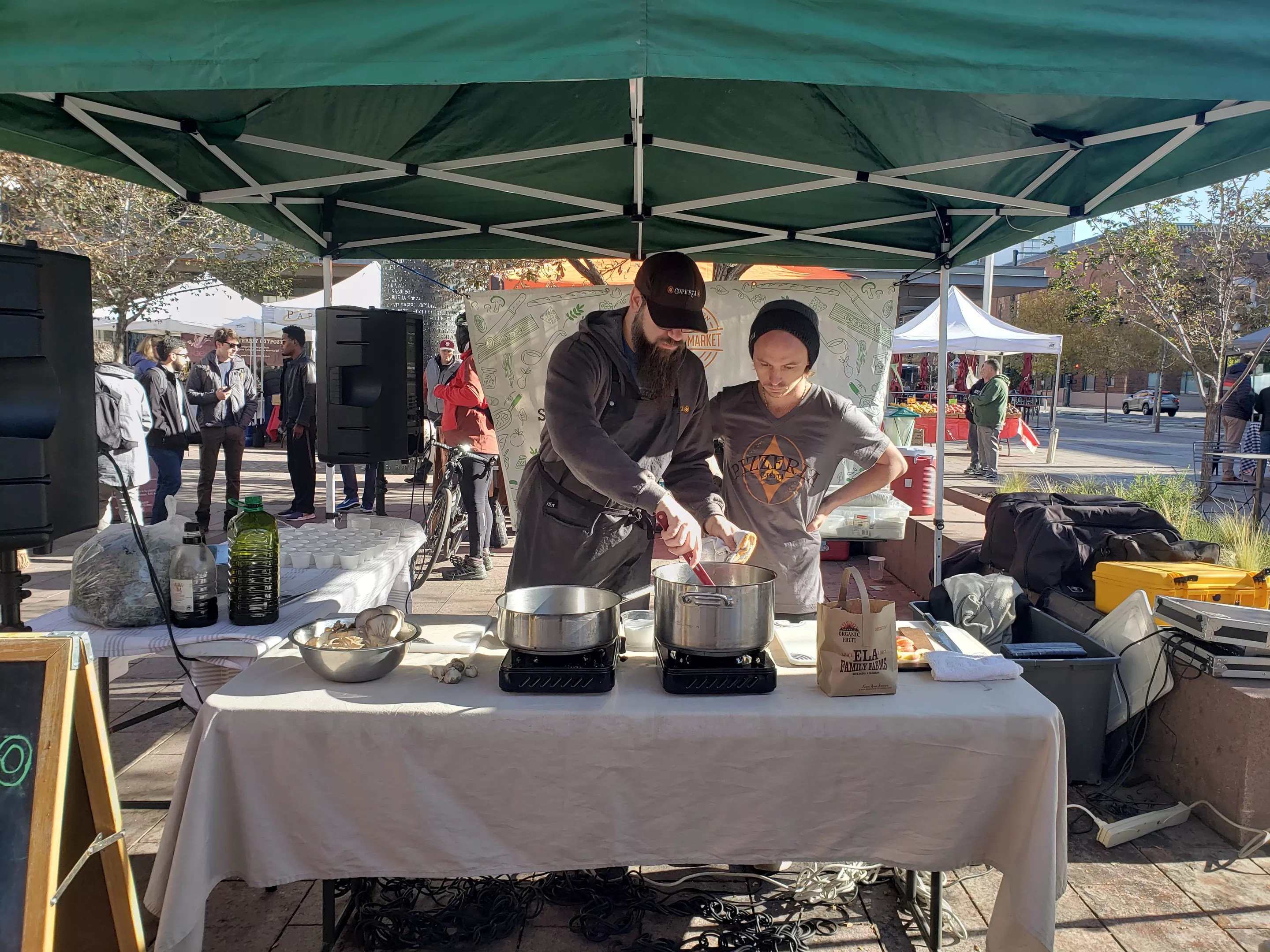 Chefs Russ Fox and Kenny Minton of Coperta and Pizzeria Coperta, respectively, at the Union Station Farmers’ Market.