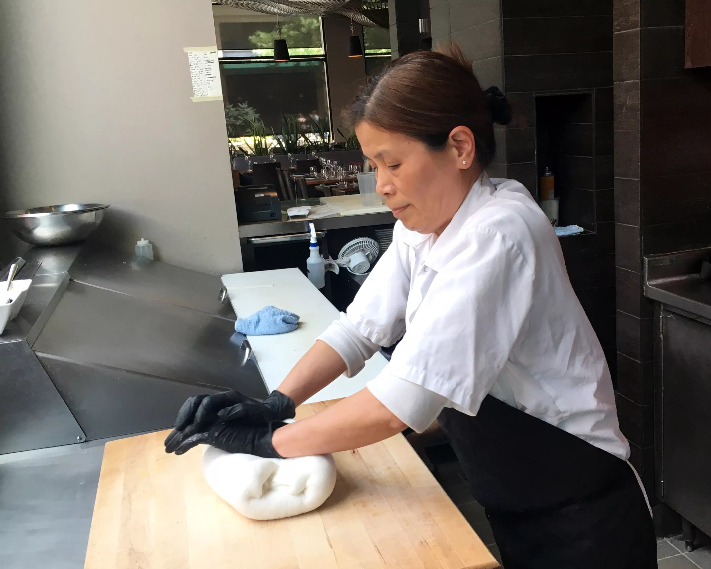 Michelle Xiao just bought a new knife, but she doesn’t like it – it’s too new. But there’s not another one like it in the kitchen at ChoLon Modern Asian, where she just started working, so she’s scuffing it up a little with a scouring pad.