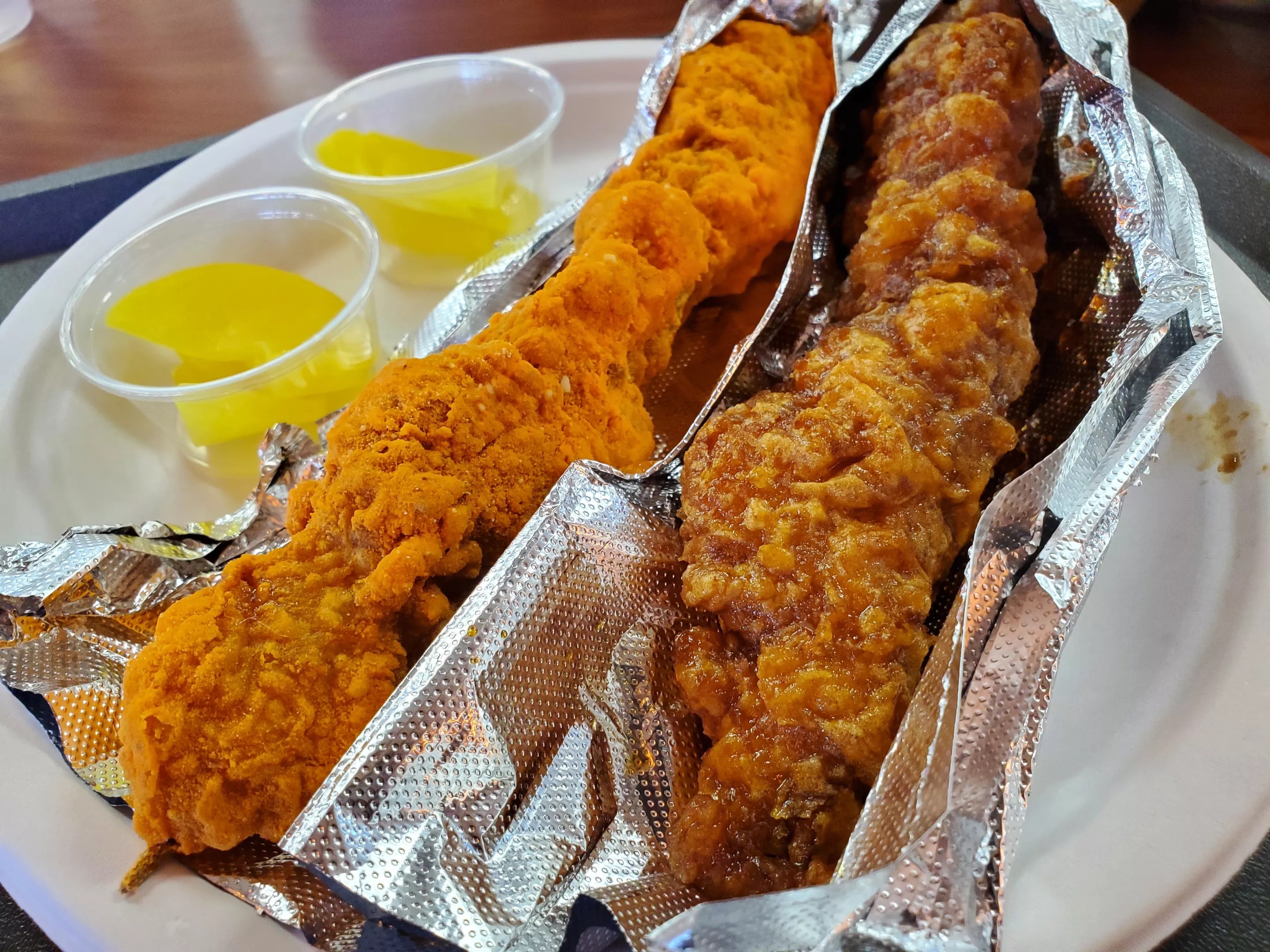 The current lineup in the large, open space includes such offerings as croffles, a mix between a waffle and a croissant topped with options like fruit and Nutella from Croffle Haven; Korean toast sandwiches with a sweet and spicy gochujang sauce from Mad Toast; and crispy fried chicken on a stick (or in a box), in flavors like the popular soy garlic and a new cheese powder seasoning, a real standout from KoCo Street Food, which started as a food truck almost a year ago.