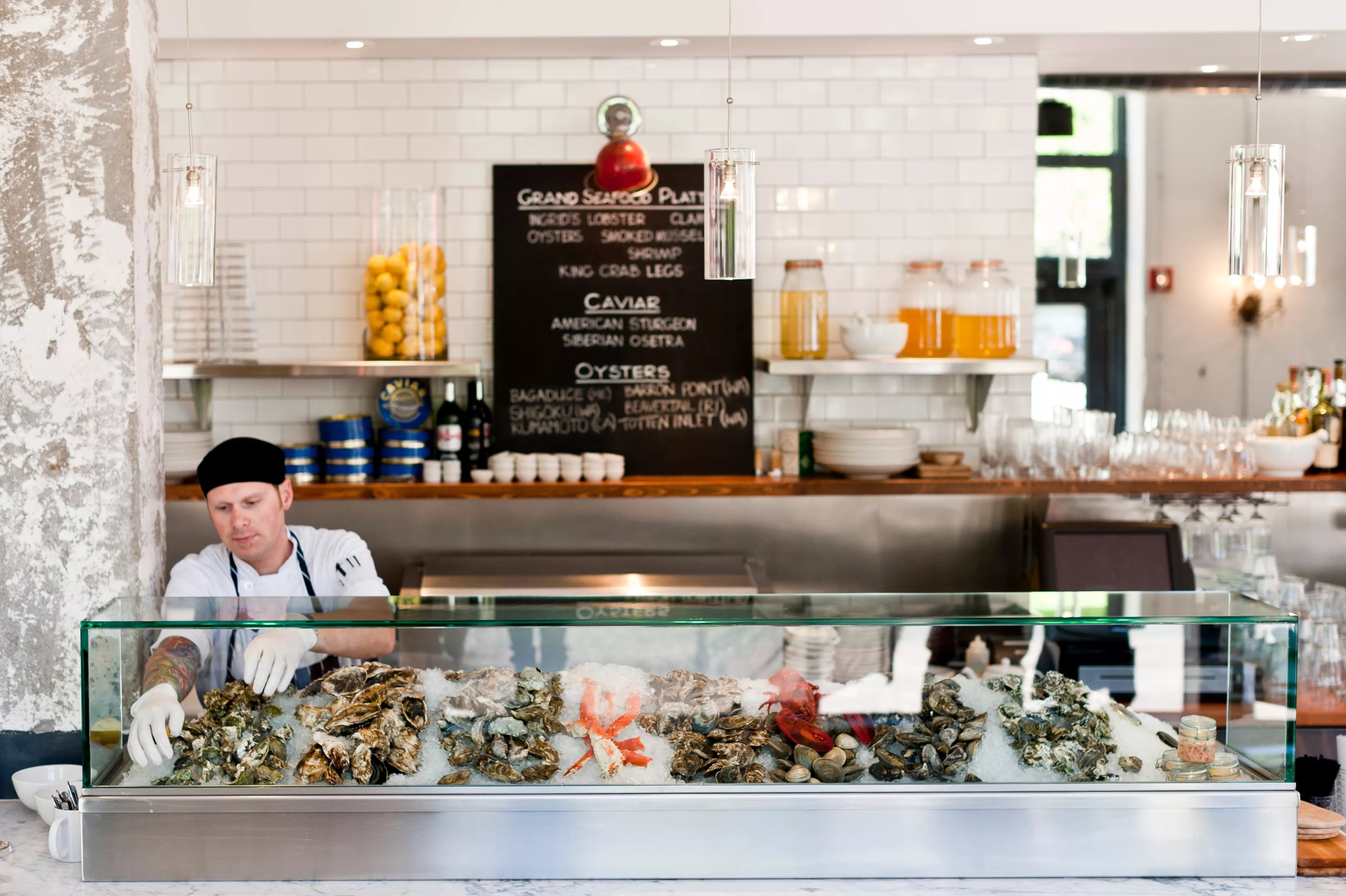 Stoic & Genuine, a multi-coastal seafood restaurant from Crafted Concepts partners Jennifer Jasinski and Beth Gruitch, builds an impressive raw bar, with seafood deliveries occurring daily. Executive chef Gabe Wyman offers six to eight oyster varieties on any given day, often updating the menu each service to showcase several varieties from each coast. In addition to oysters, seafood lovers will find a selection of